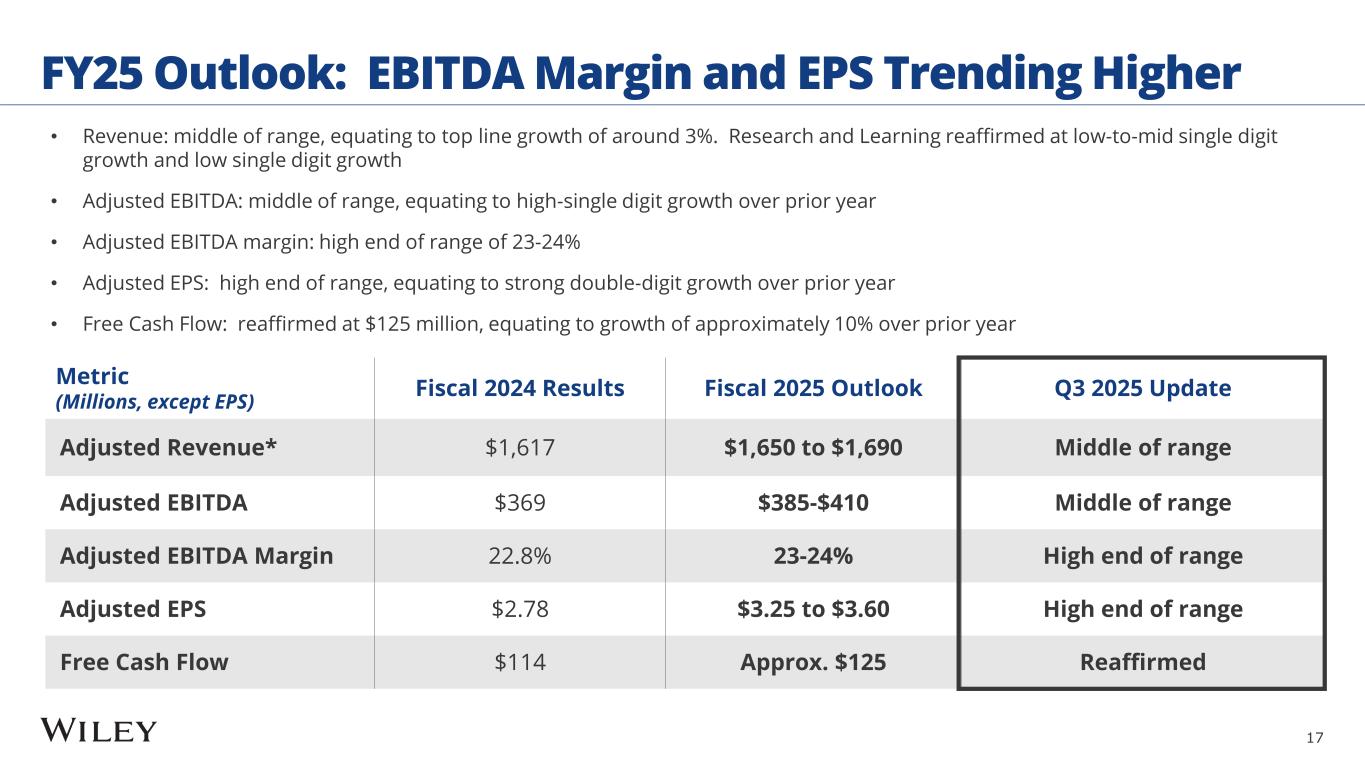 | Metric | Fiscal 2024 Results | Fiscal 2025 Outlook | Q3 2025 Update | ||||||||