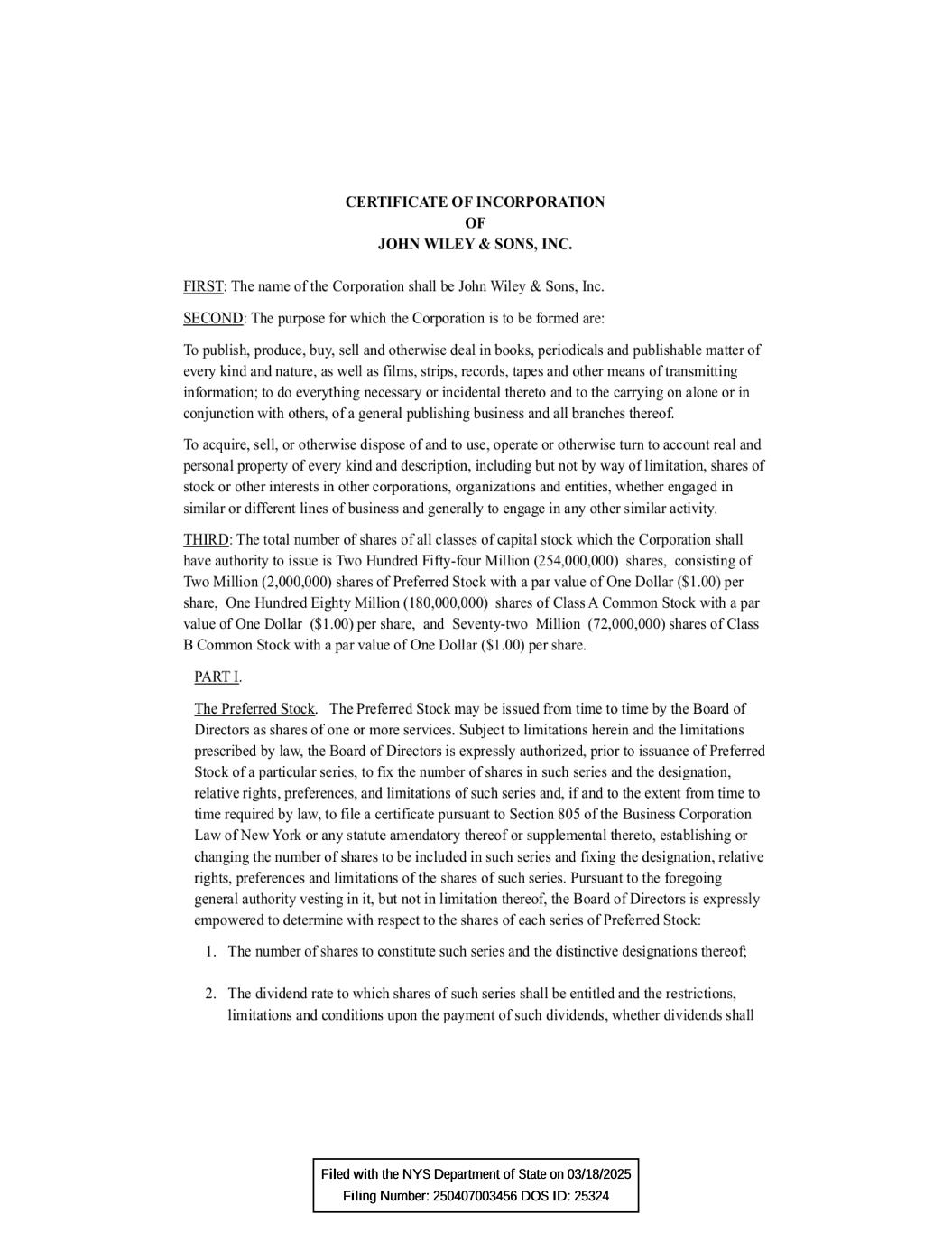 The Company, founded in 1807, was incorporated in the state of New York on January 15, 1904. Throughout this report, when we refer to “Wiley,” the “Company,” “we,” “our,” or “us,” we are referring to John Wiley & Sons, Inc. and all of our subsidiaries, except where the context indicates otherwise.