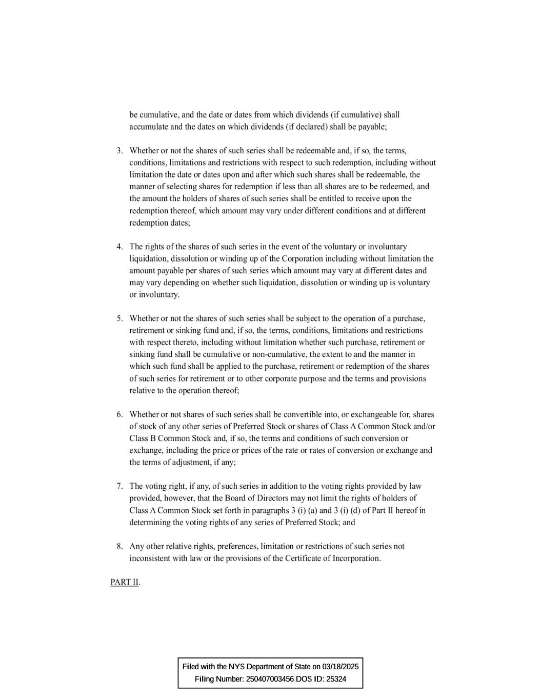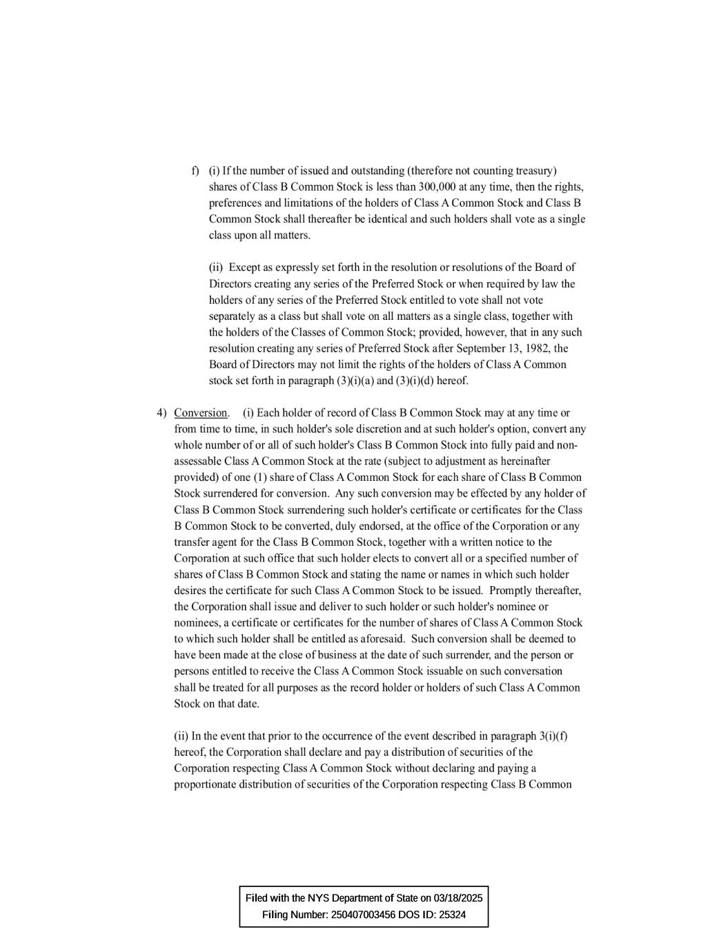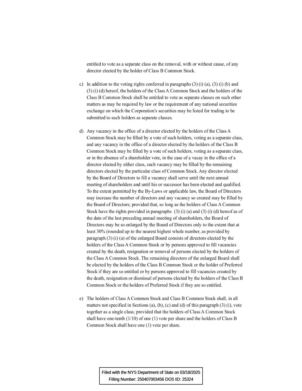 The number of shares outstanding of the registrant’s Class A and Class B Common Stock as of May 31, 2025 was 44,624,949 and 8,768,531 respectively.