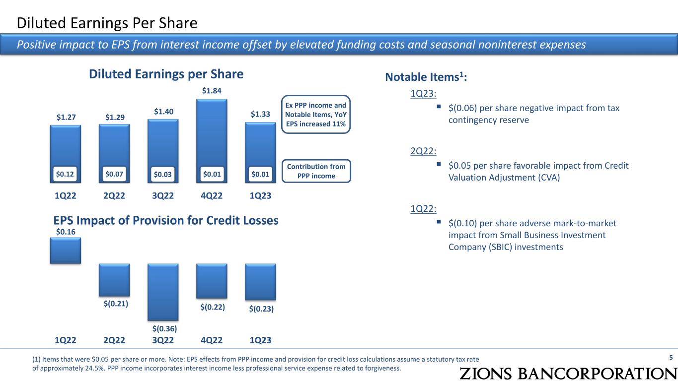 | Zions Bancorporation, N.A.の報告:23年第1四半期 純利益1億9800万ドル、希薄化後EPS1.33ドル |