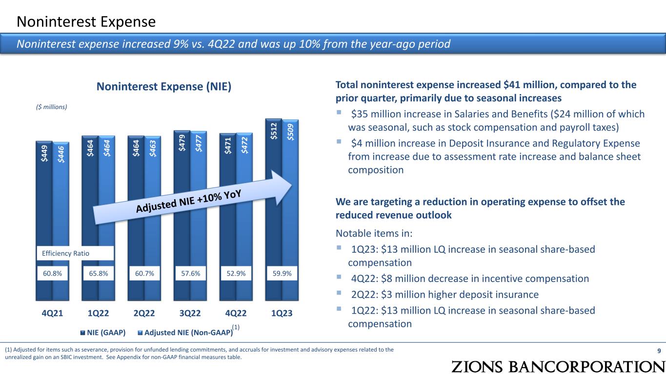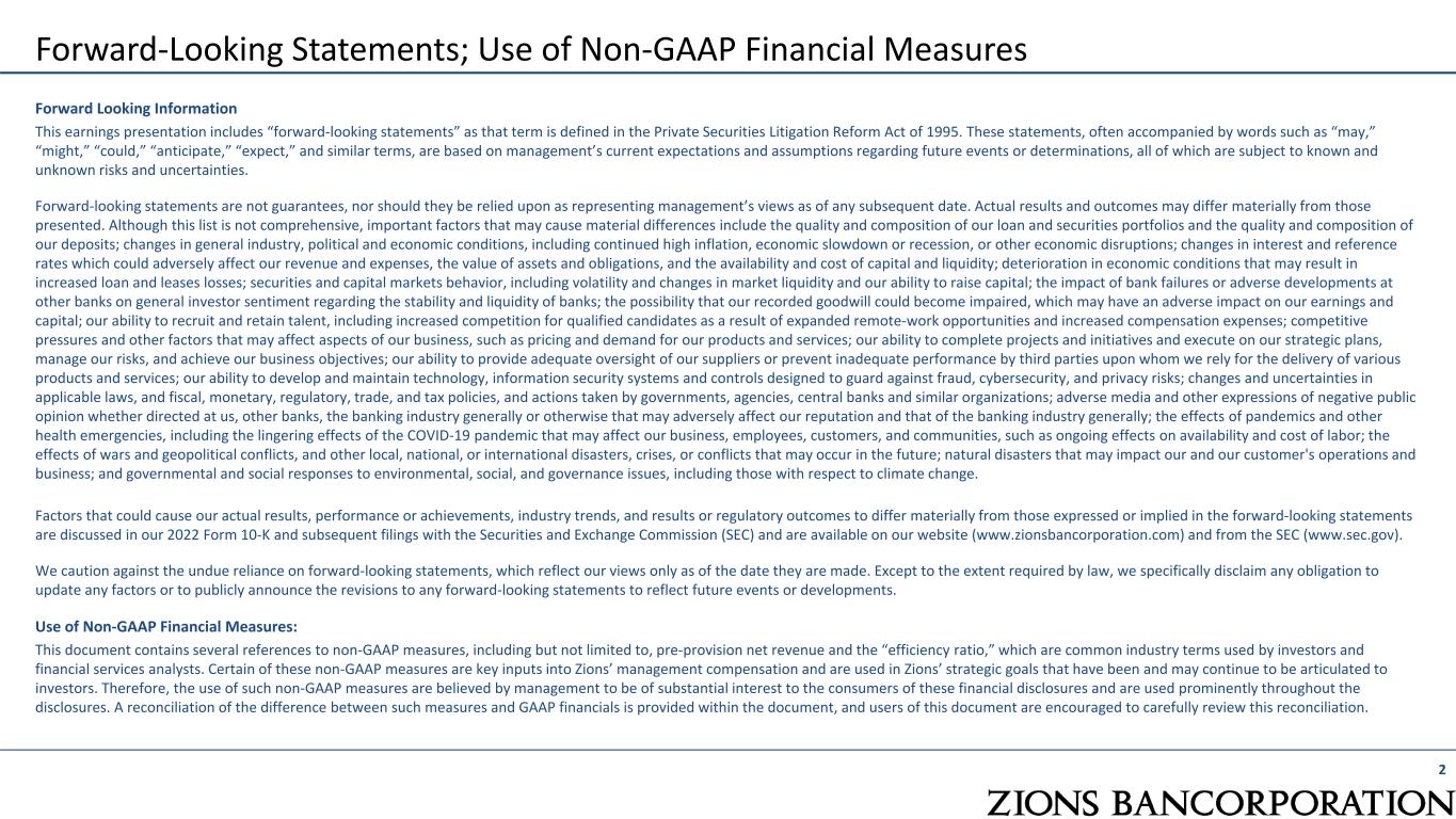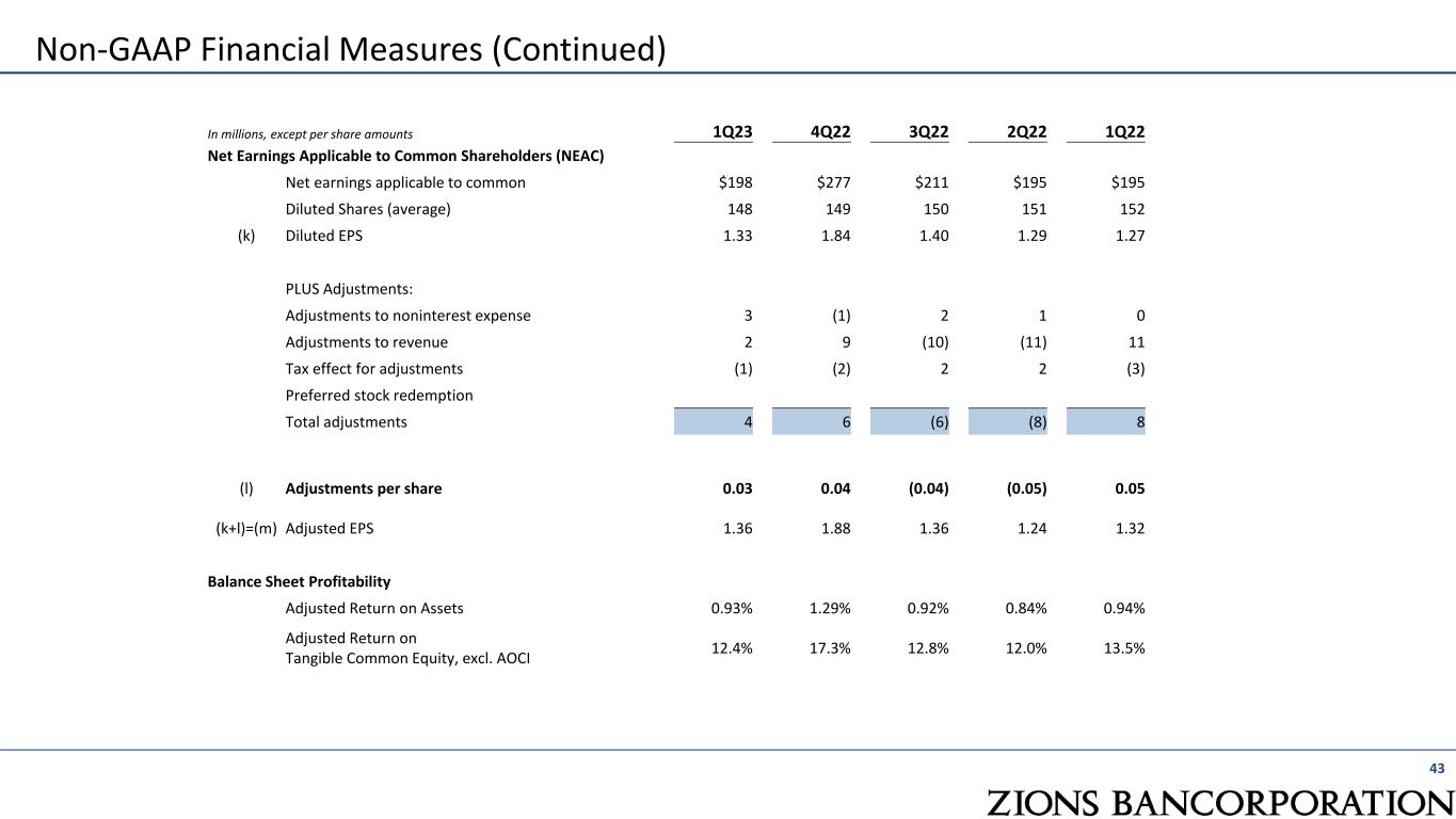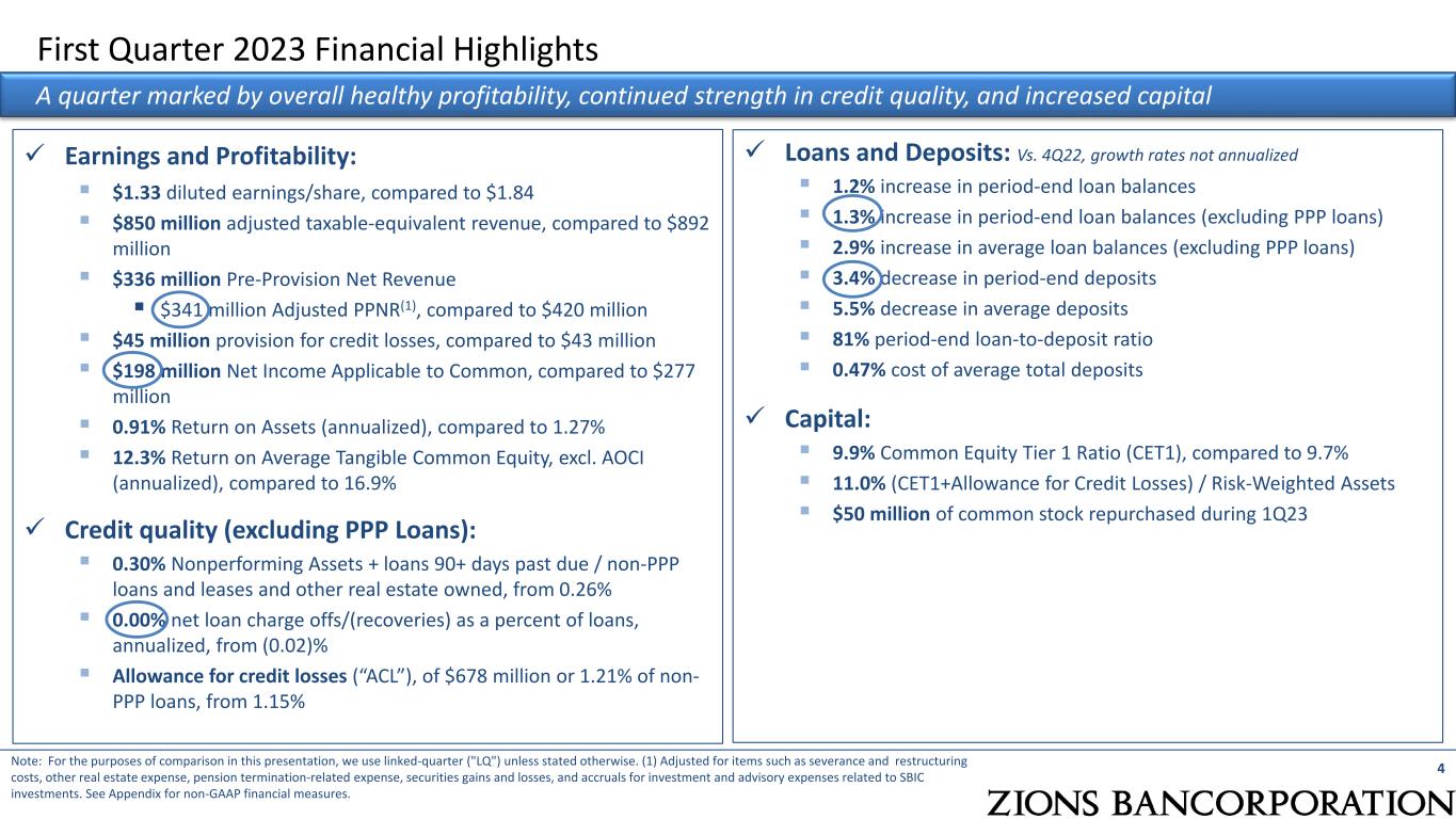 | Zions Bancorporation, N.A. reports: 1Q23 Net Earnings of $198 million, diluted EPS of $1.33 | ||
