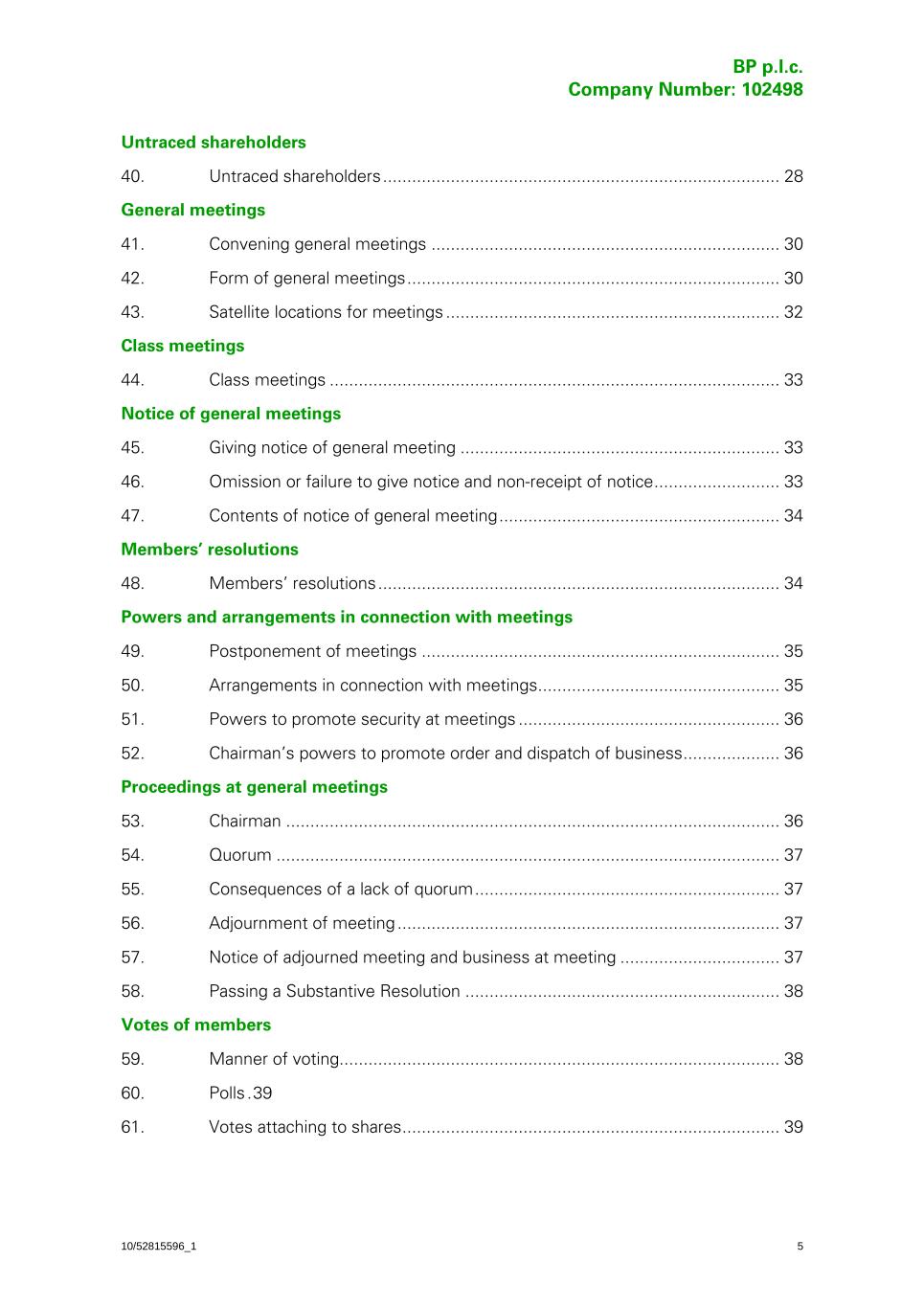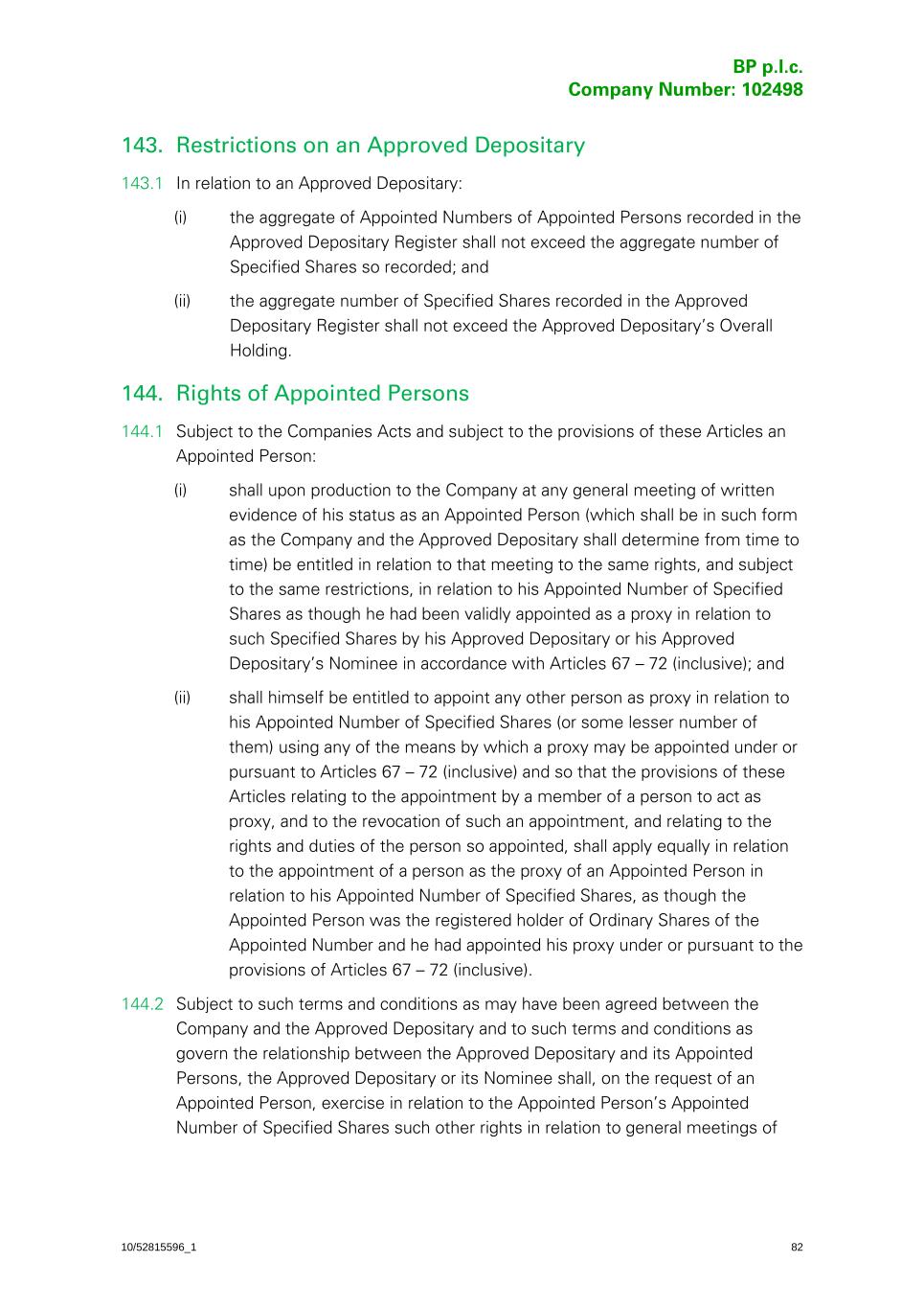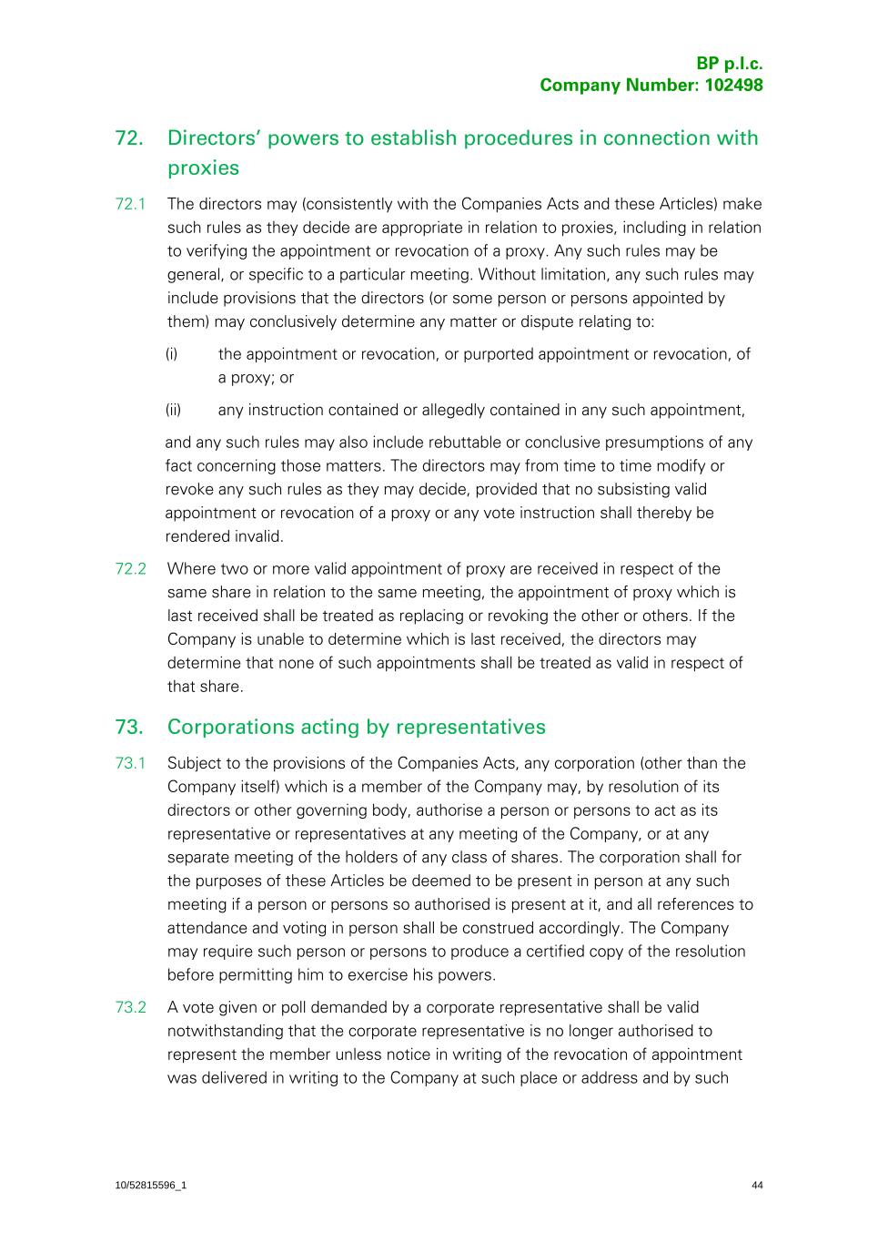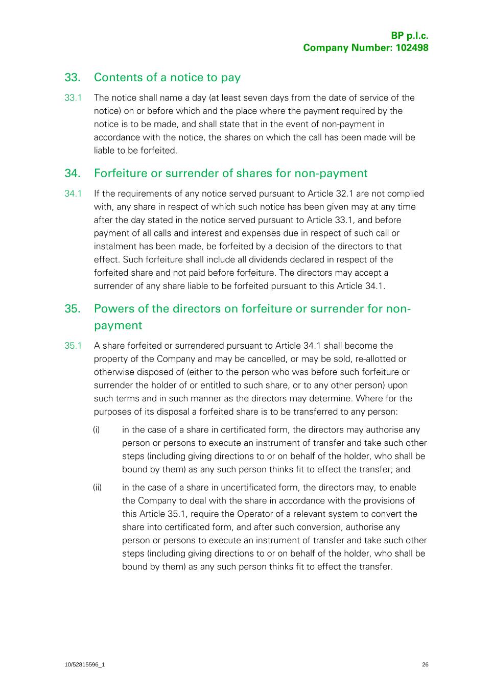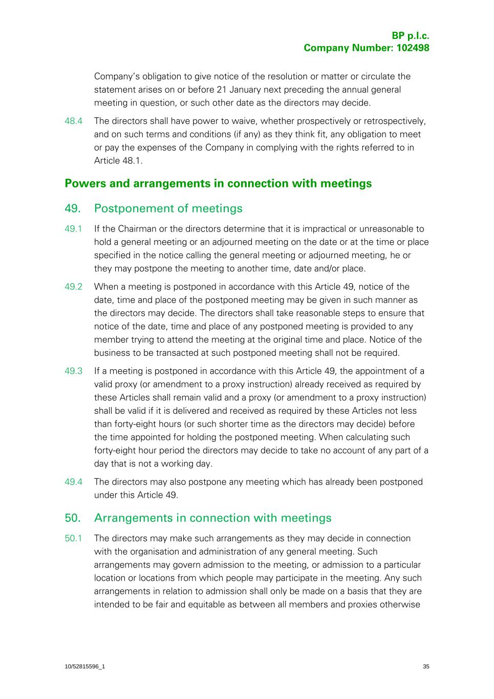 Shareholders must provide BP with a postal or electronic address in the UK to be entitled to receive notice of shareholders’ meetings. Holders of BP ADSs are entitled to receive notices under the terms of the deposit agreement relating to BP ADSs. The substance and timing of notices are described above under the heading Voting rights.