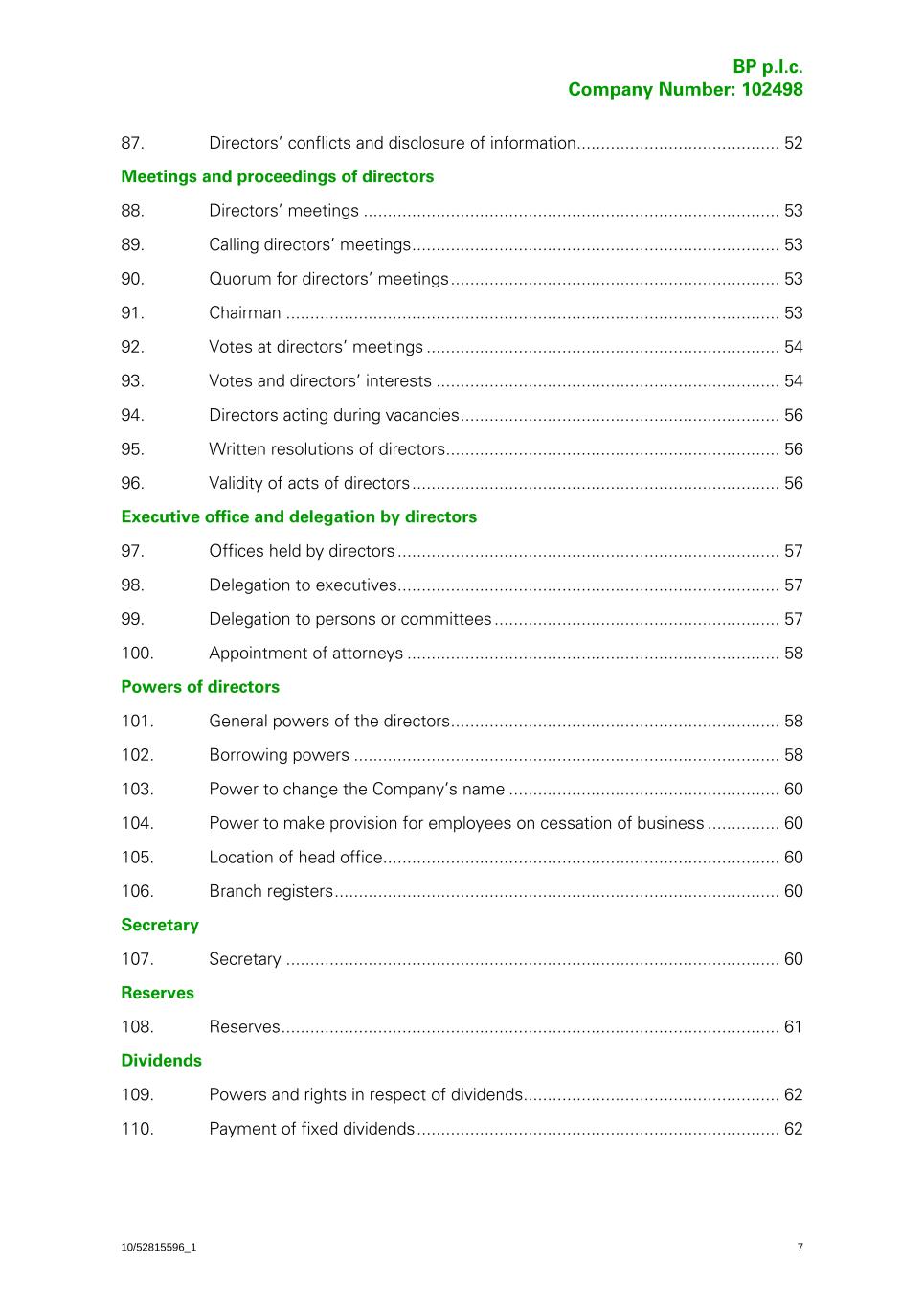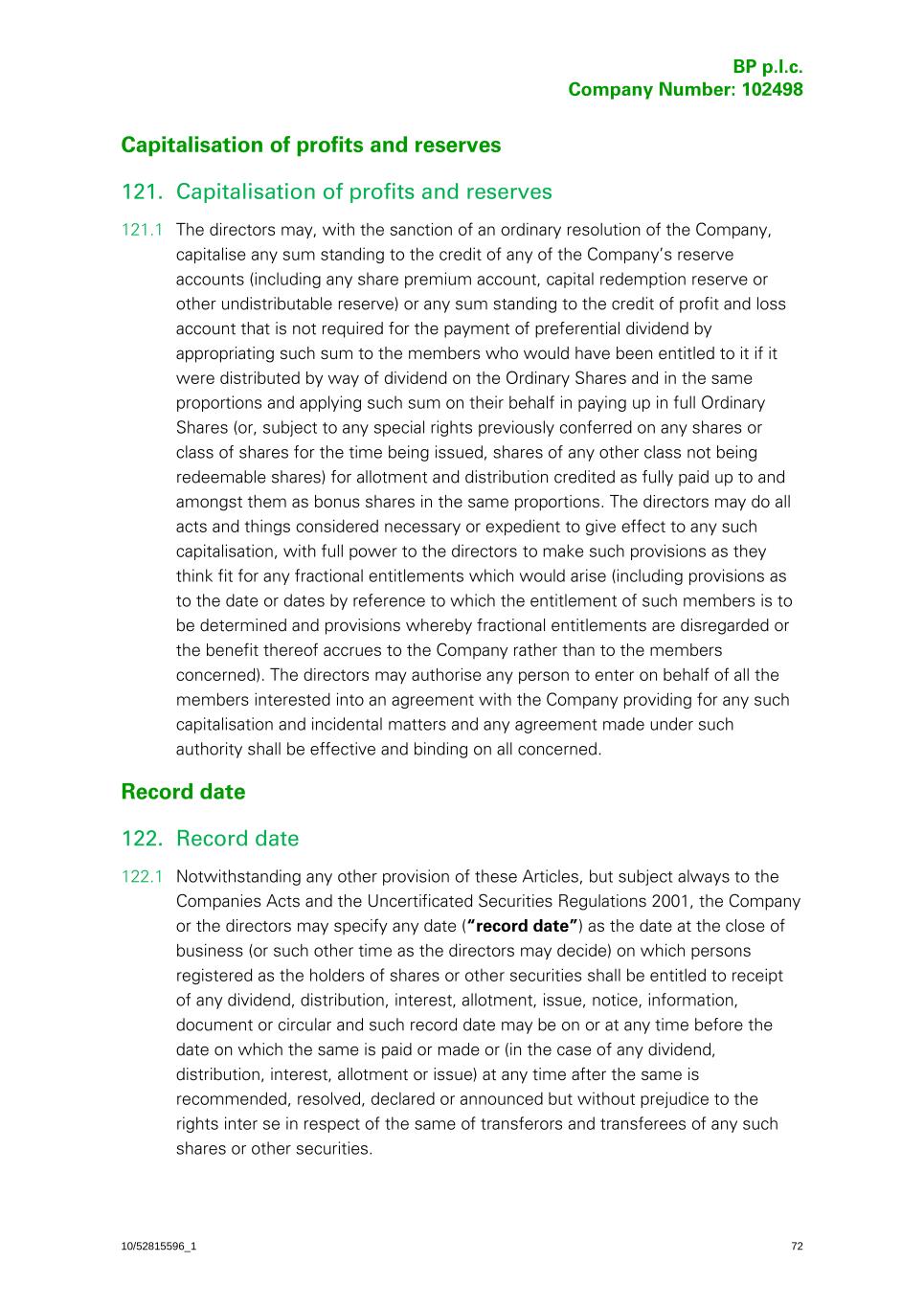 Apart from shareholders’ rights to share in BP’s profits by dividend (if any is declared or announced), BP’s Articles of Association provide that the directors may set aside: