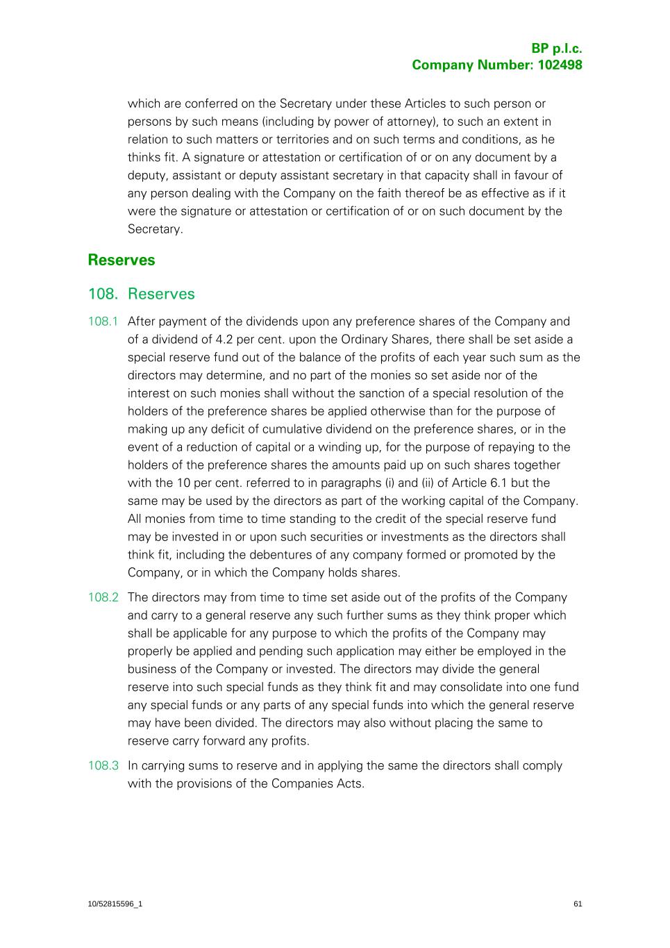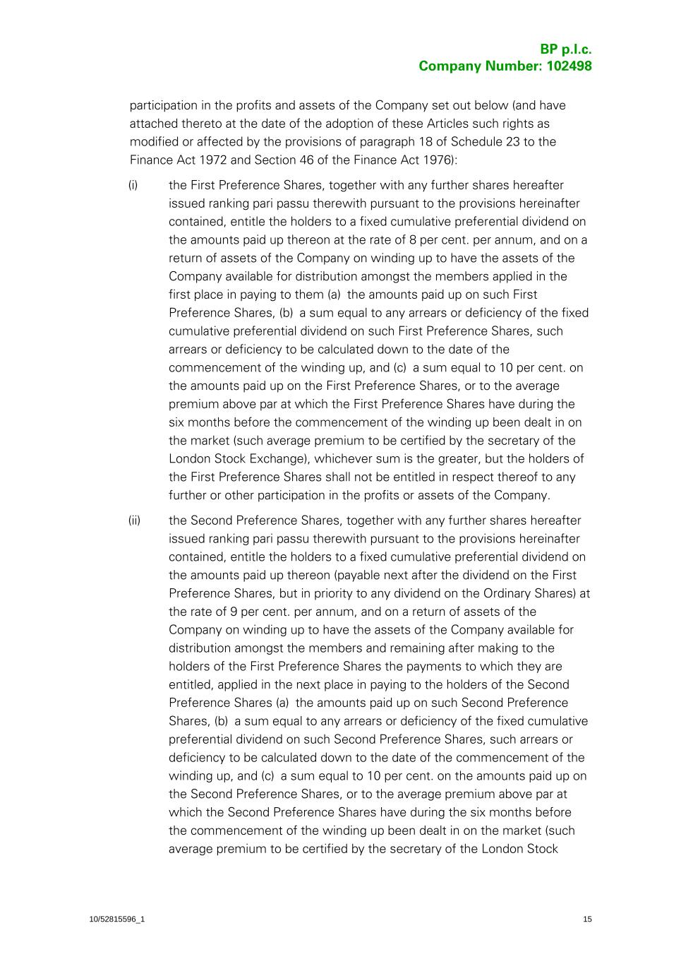 •A special reserve fund out of the balance of profits each year to make up any deficit of cumulative dividend on the BP preference shares.