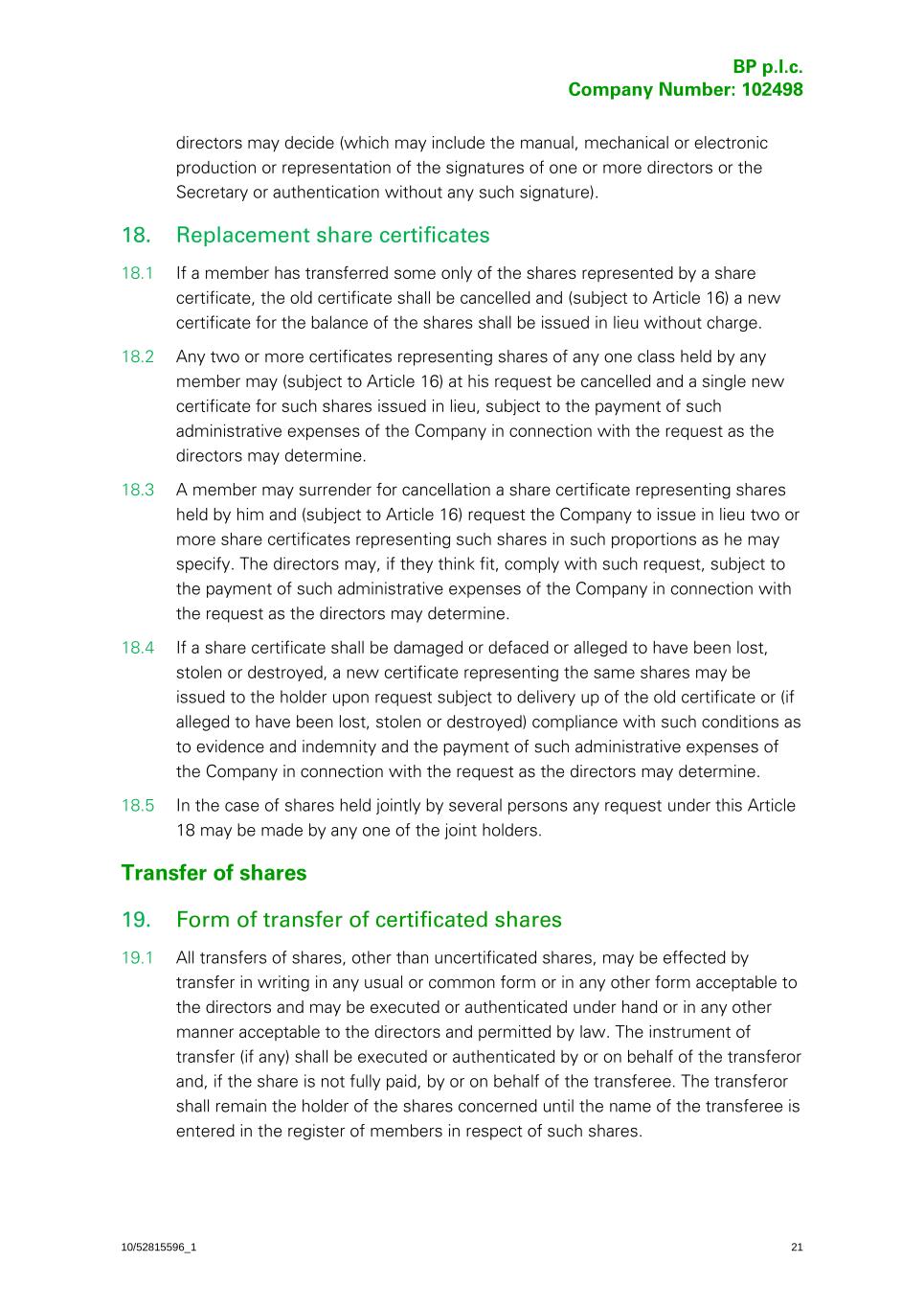 BP may not refuse to register transfers of BP ordinary shares if it would prevent dealings in the shares on the London Stock Exchange from taking place on an open and proper basis.