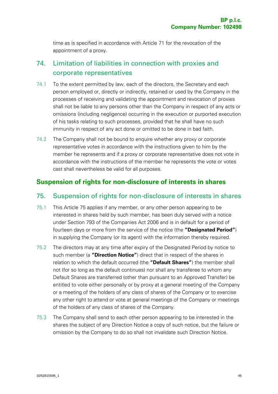 A copy of BP’s Articles of Association is filed as Exhibit 1 to BP’s Annual Report and Form 20-F 2024.