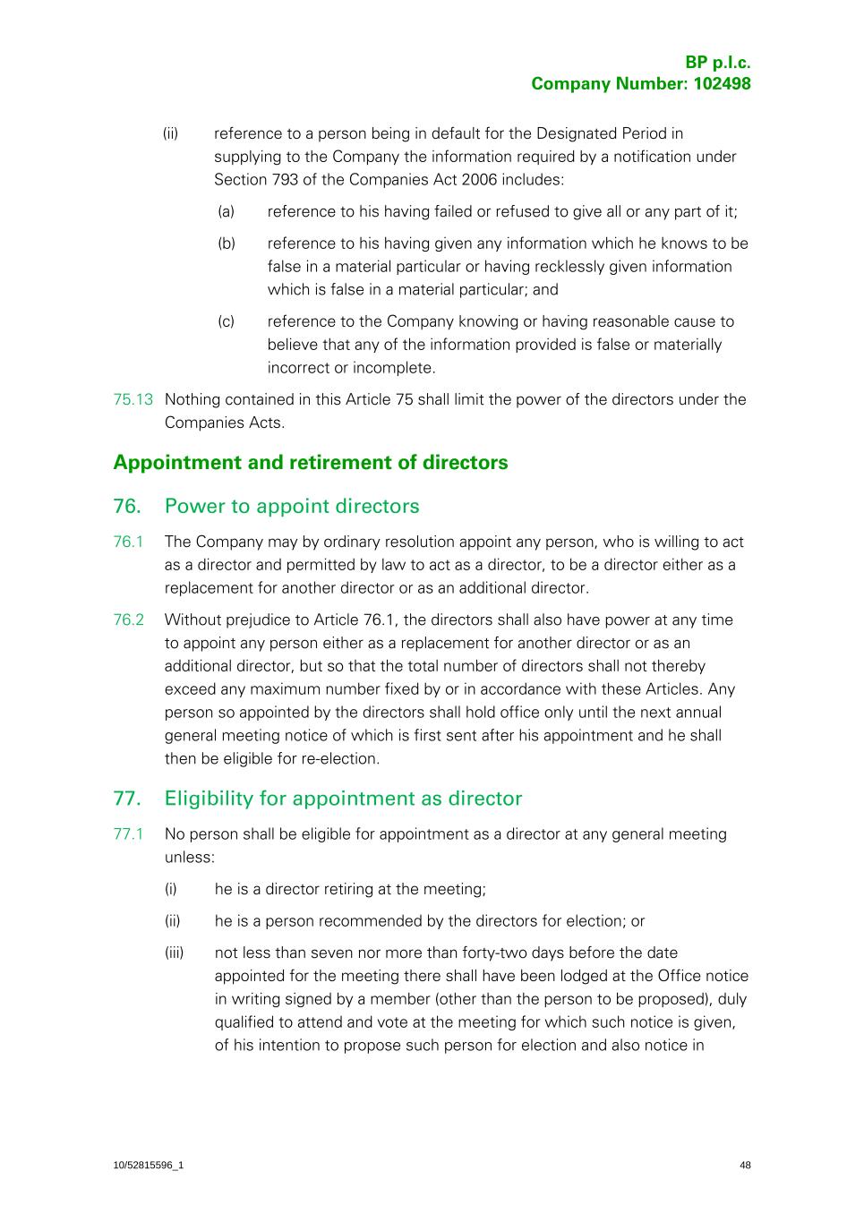 Under section 793 of the Act, BP may, by notice in writing, require a person that BP knows or has reasonable cause to believe is or was during the three years preceding the date of notice interested in BP’s shares to indicate whether or not that is the case and, if that person does or did hold an interest in BP’s shares, to provide certain information as set out in that Act.