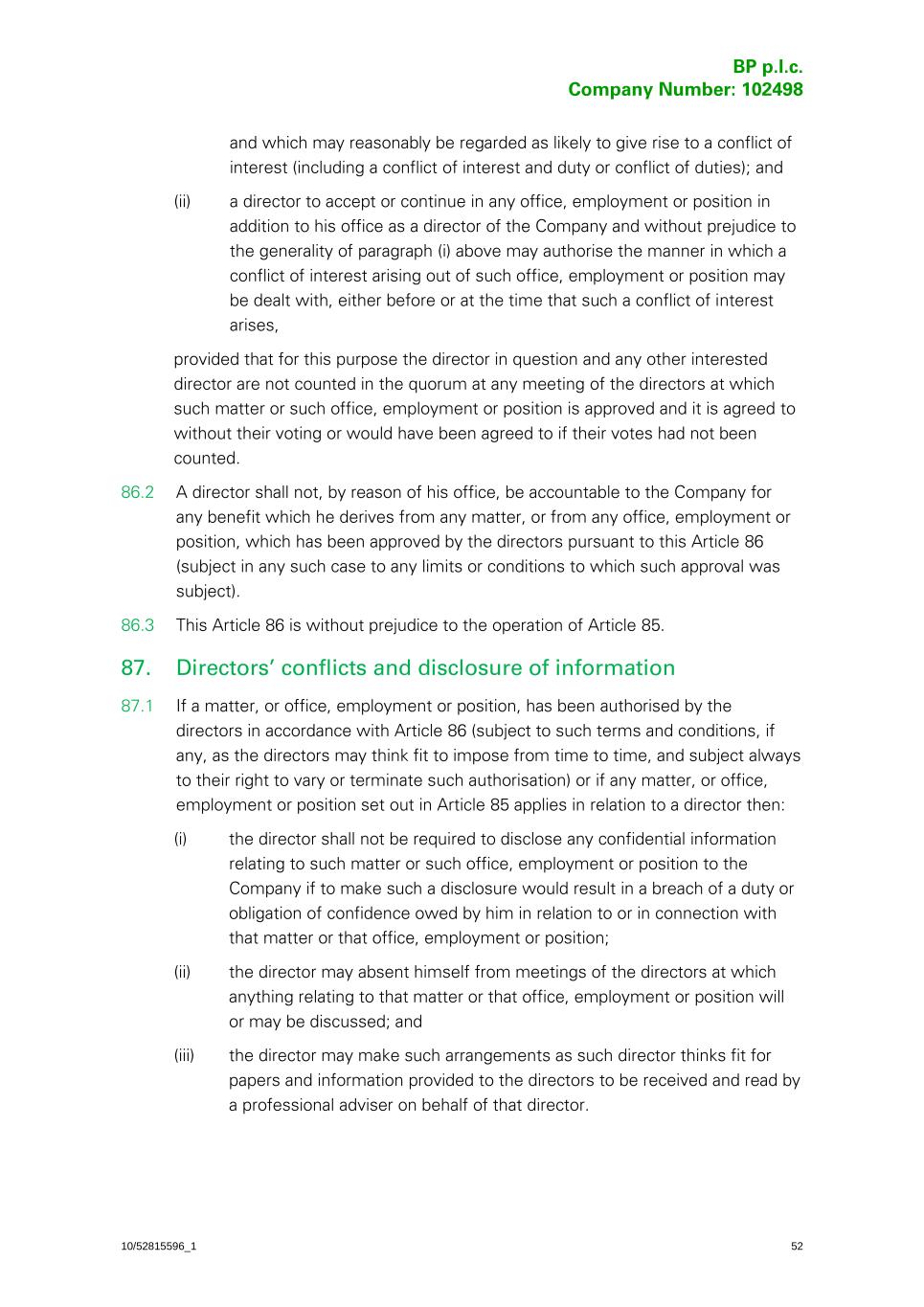 BP’s Articles of Association authorize the directors to issue equity securities subject to the provisions of the Act and any resolution passed by shareholders in general meeting (such authority is sought on an annual basis).