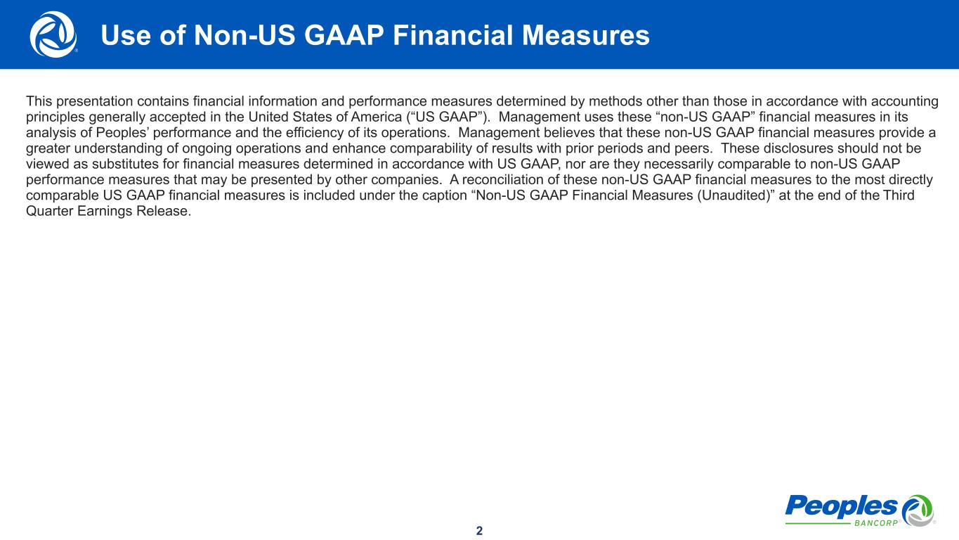 Peoplesはまた、業績に関する電話会議で使用される電子プレゼンテーション・スライドも提供しました。この電子スライドは、本Current Report on Form 8-Kの別紙99.2として添付されています。