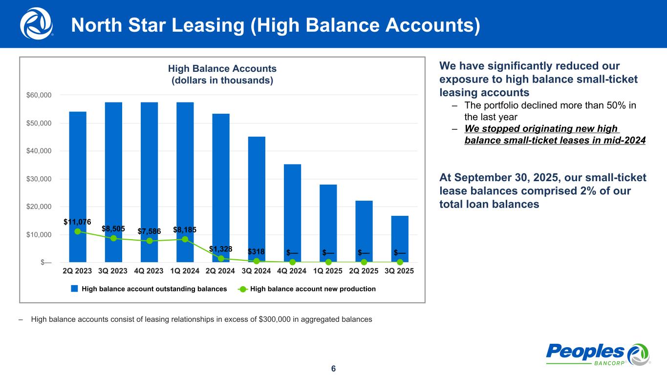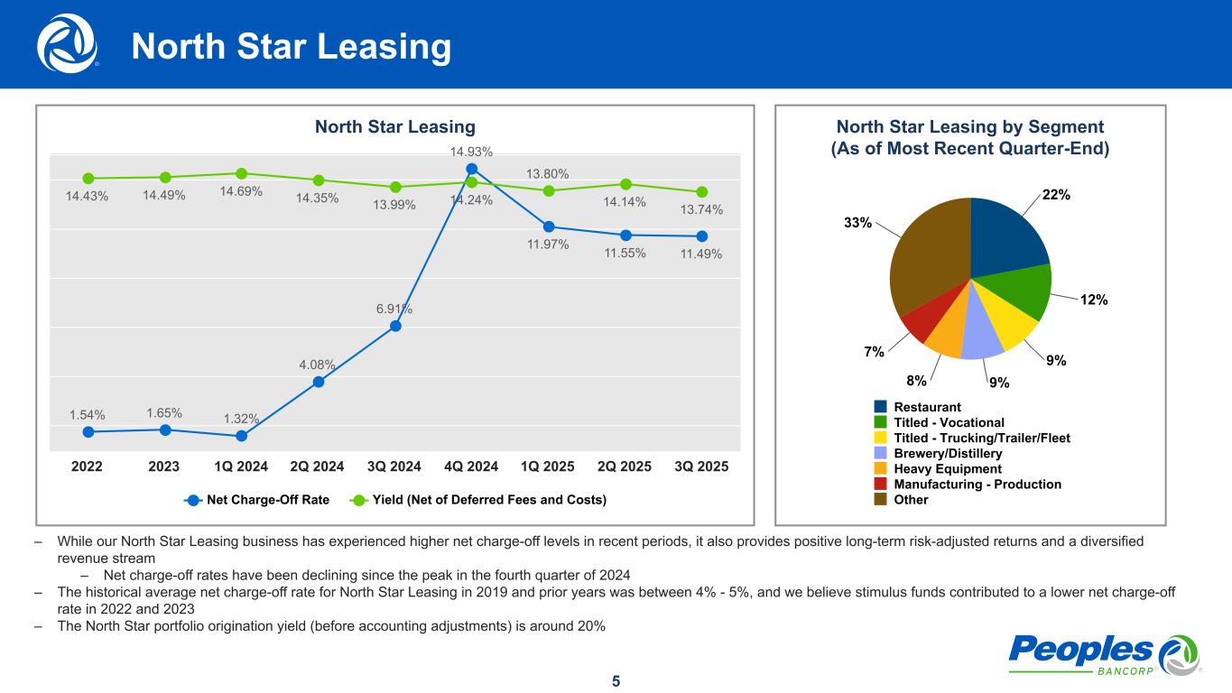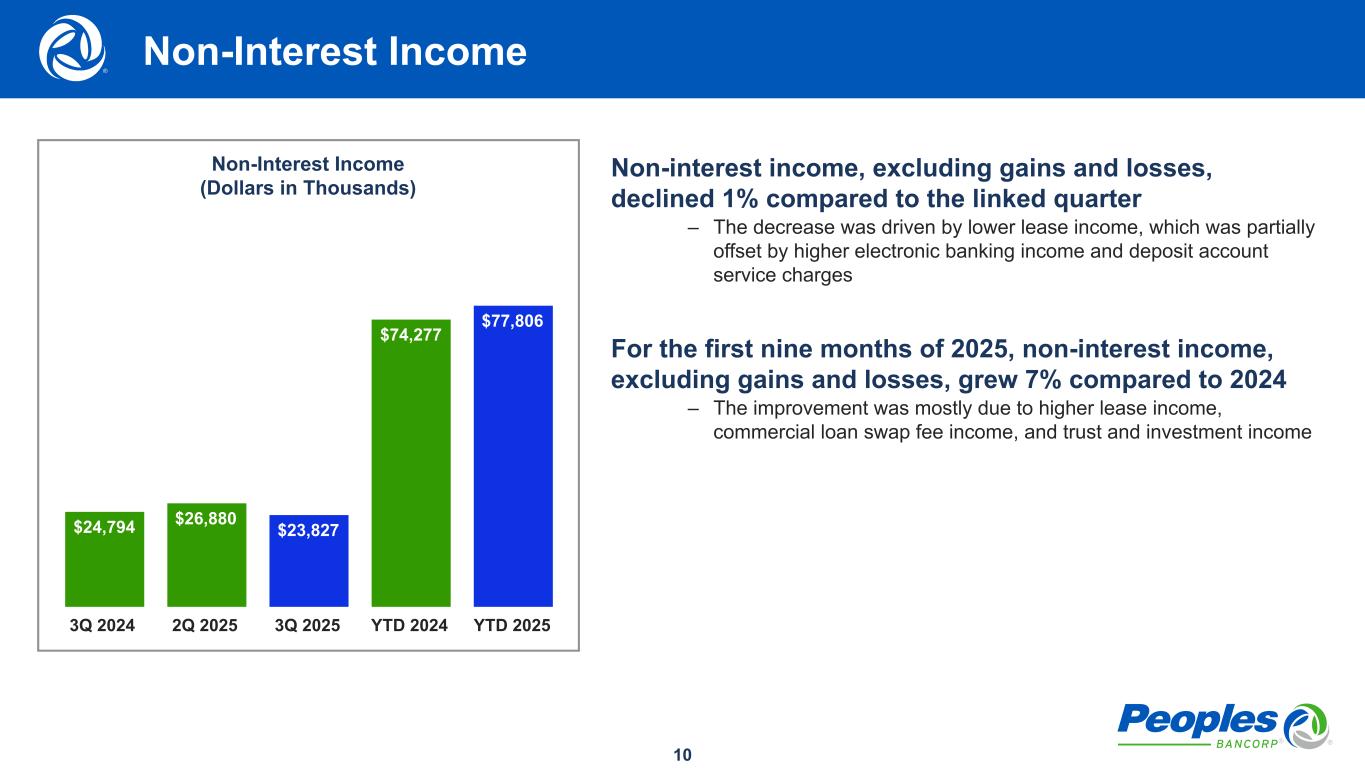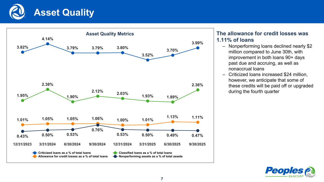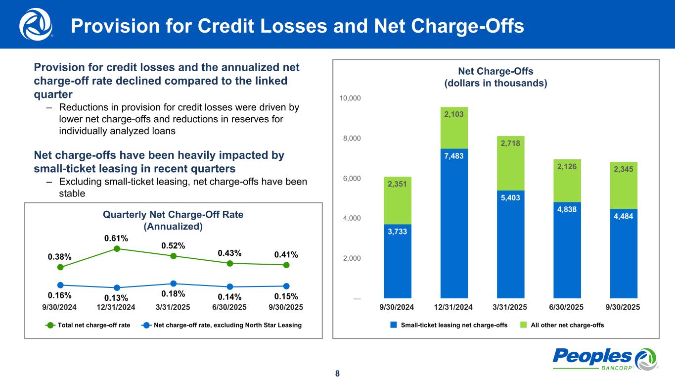 -ピープルズでは、2025年第3四半期に730万ドルの貸倒引当金を計上しましたが、これに対して2025年第2四半期は1,660万ドルの貸倒引当金を計上しました。