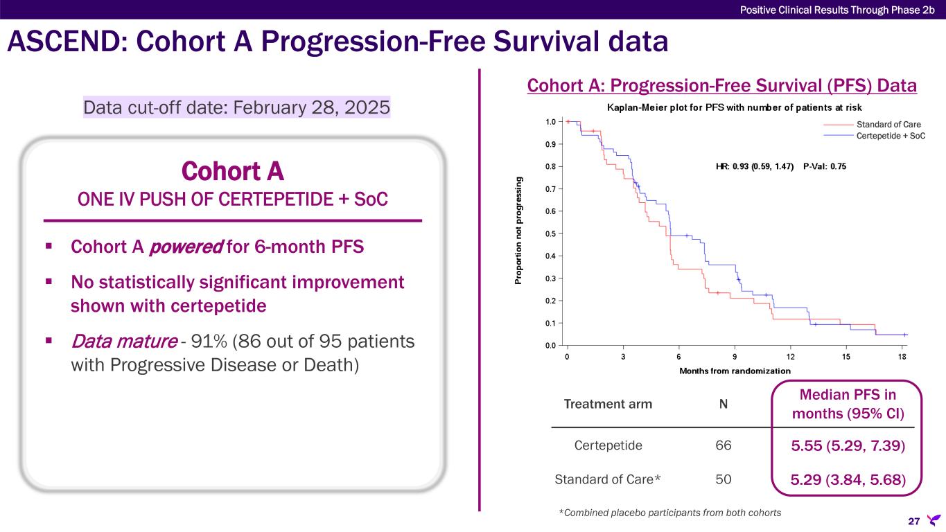 「当四半期においても、ASCEND試験、iLSTA試験、CENDIFOX試験など、セルテペチドを含む多くの臨床試験から良好なデータが報告されました。また重要なこととして、当社はGATC Health社との戦略的提携を発表し、同社の人工知能創薬プラットフォームMultiomics Advanced Technology™を使用して開発候補品を特定すること、およびキャタレント社が様々な抗体薬物複合体に使用するセルテペチドを入手するためのグローバル・ライセンス契約を締結したことを明らかにした。全体として、当四半期は生産的で前向きな四半期であり、継続的な経費管理への警戒が顕著でした。その結果、2027年第1四半期までの現在の事業運営資金を手元資金で賄える見通しとなりました。「私たちは、2025年の残りの期間と2026年まで、安定した追加データの流れを見込んでいます。