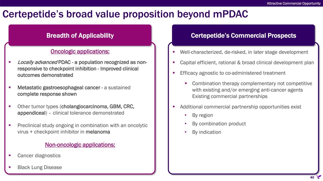 -セルテペチドの中華圏におけるライセンシーである奇瑞製薬は、mPDACの一次治療薬としてセルテペチドとゲムシタビンおよびナブパクリタキセルの併用療法を開発している。2023年のASCO年次総会において、Qilu Pharmaceuticalは、オーストラリアで実施されたmPDACの一次治療患者を対象としたセルテペタイドとゲムシタビンおよびナブパクリタキセルの併用療法のフェーズ1b/2a試験から得られた既報の知見を裏付ける予備的データを共有する抄録を発表した。Qilu社は第2相試験の登録を完了し、データは2026年に期待されている。