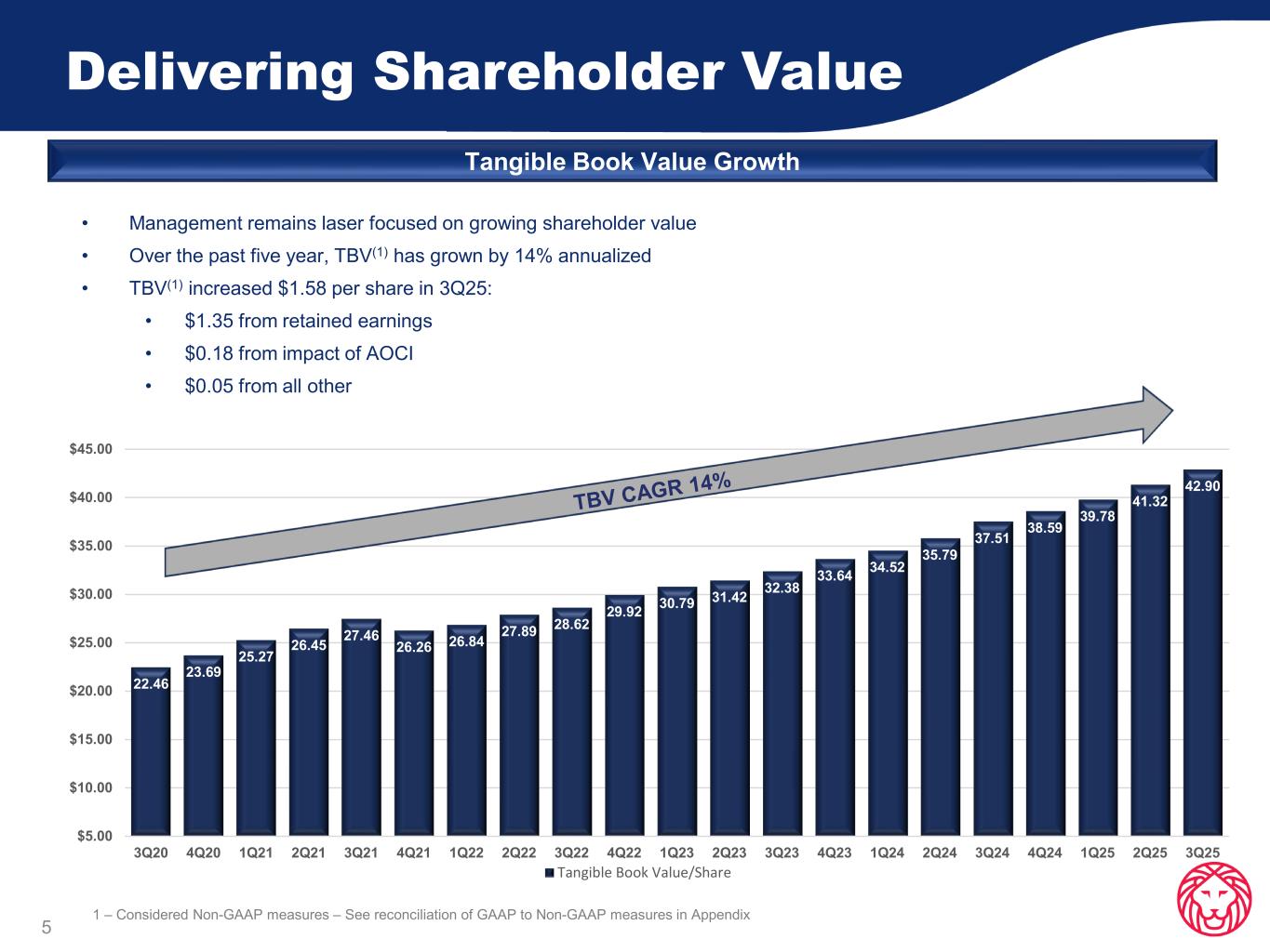 | Tangible book value per share (period end) | $ | 42.90 | $ | 41.32 | $ | 39.78 | $ | 38.59 | $ | 37.51 | $ | 42.90 | $ | 37.51 | |||||||||||||||||||||||||||