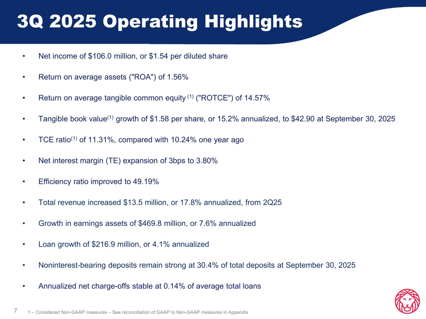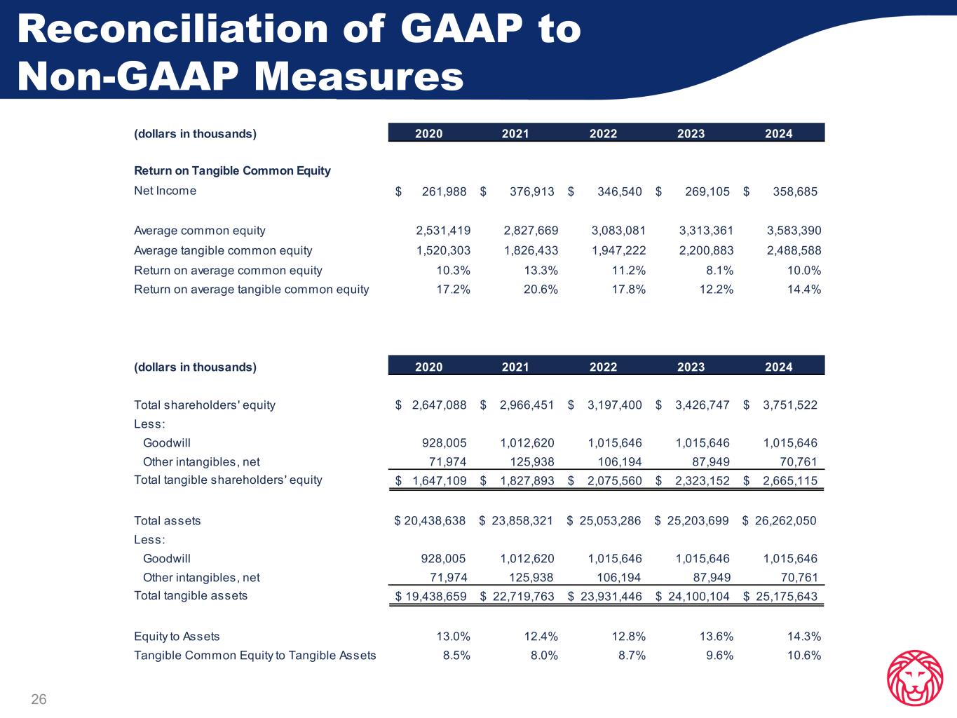 | Return on average tangible common equity | 14.57 | % | 15.82 | % | 13.14 | % | 14.27 | % | 15.63 | % | 14.53 | % | 14.47 | % | |||||||||||||||||||||||||||