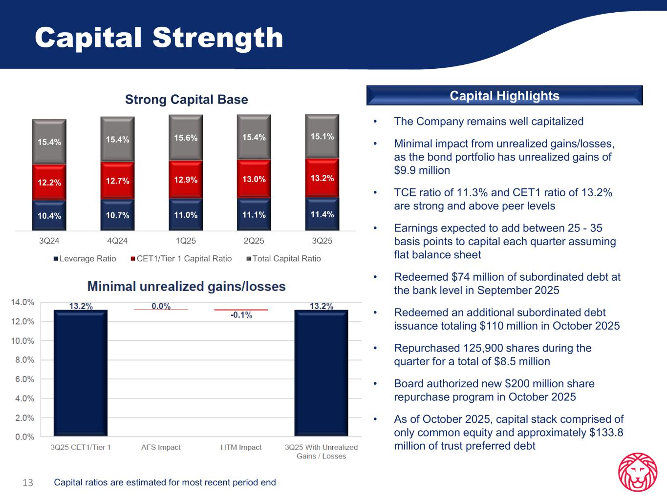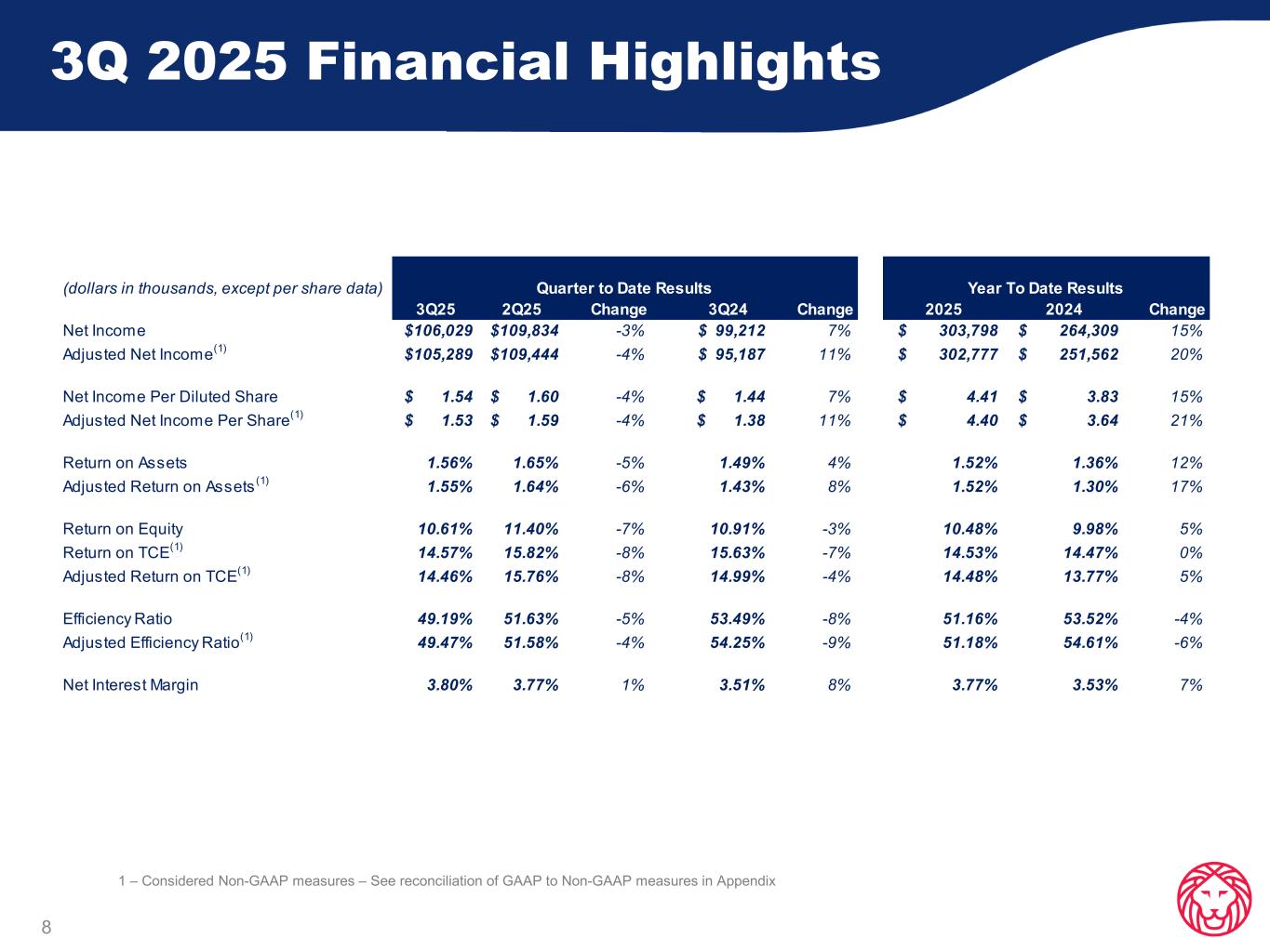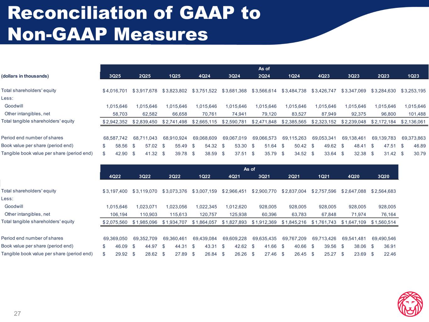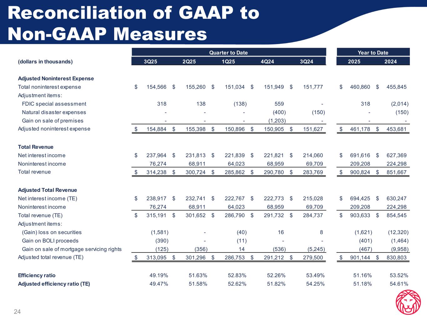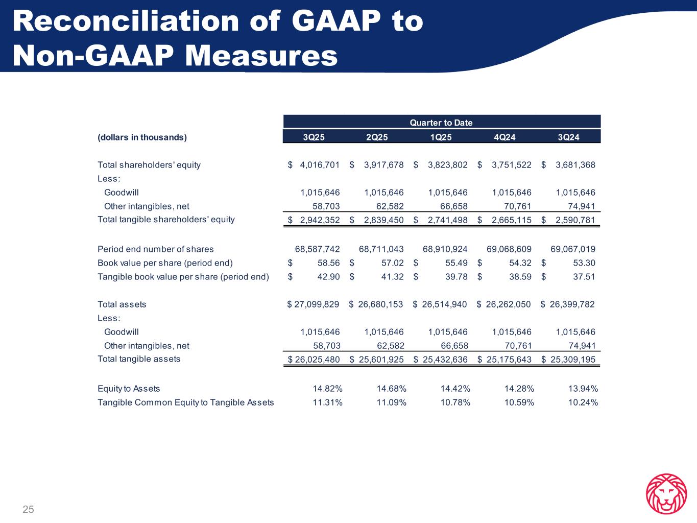 | (dollars in thousands except per share data) | 2025 | 2025 | 2025 | 2024 | 2024 | 2025 | 2024 | ||||||||||||||||||||||||||||||||||