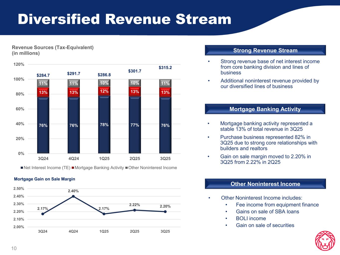 | Net interest income | $ | 12,251 | $ | 11,190 | $ | 9,880 | $ | 10,390 | $ | 10,060 | $ | 33,321 | $ | 26,015 | |||||||||||||||||||||||||||