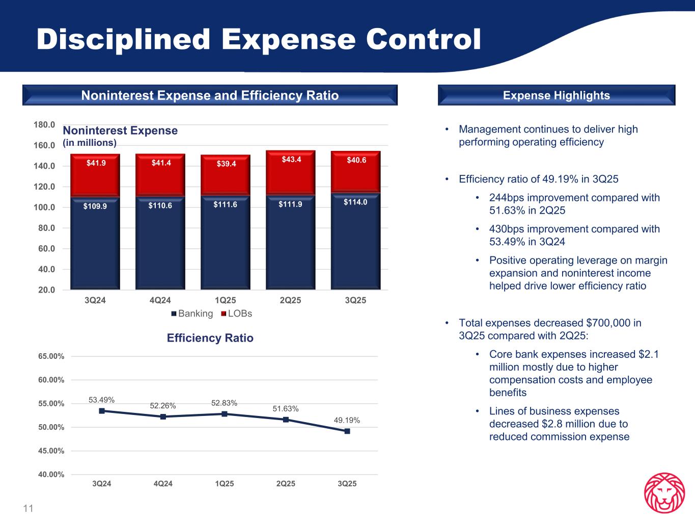 | Total noninterest expense | 113,973 | 111,851 | 111,596 | 110,566 | 109,900 | 337,420 | 327,967 | ||||||||||||||||||||||||||||||||||