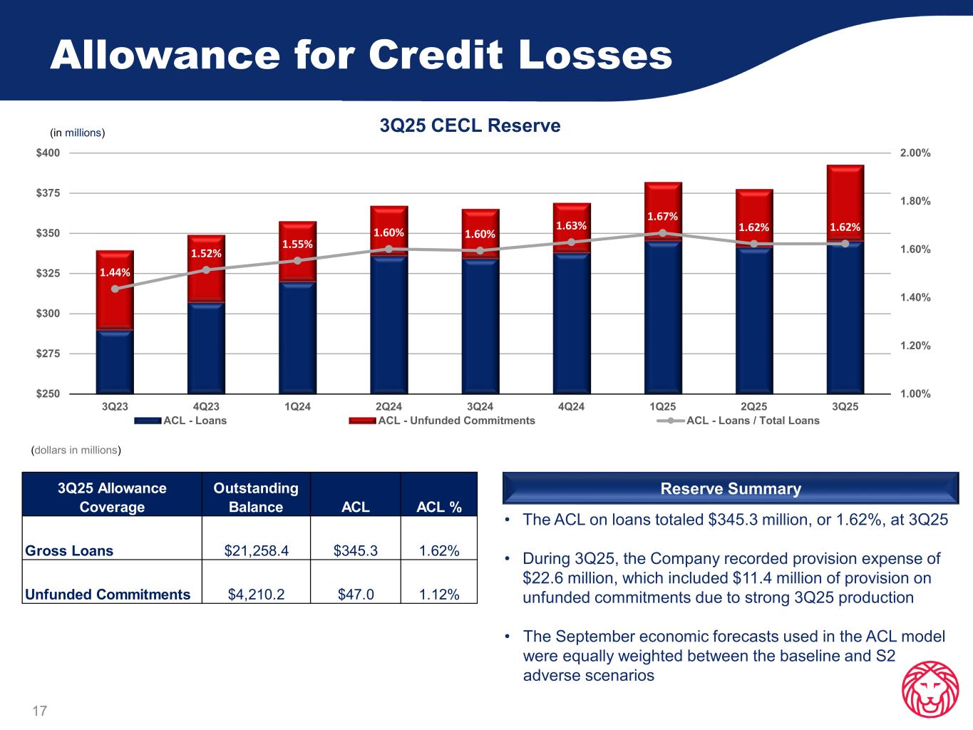 | Net interest income after provision for credit losses | 215,334 | 229,041 | 199,947 | 209,013 | 207,953 | 644,322 | 581,384 | ||||||||||||||||||||||||||||||||||