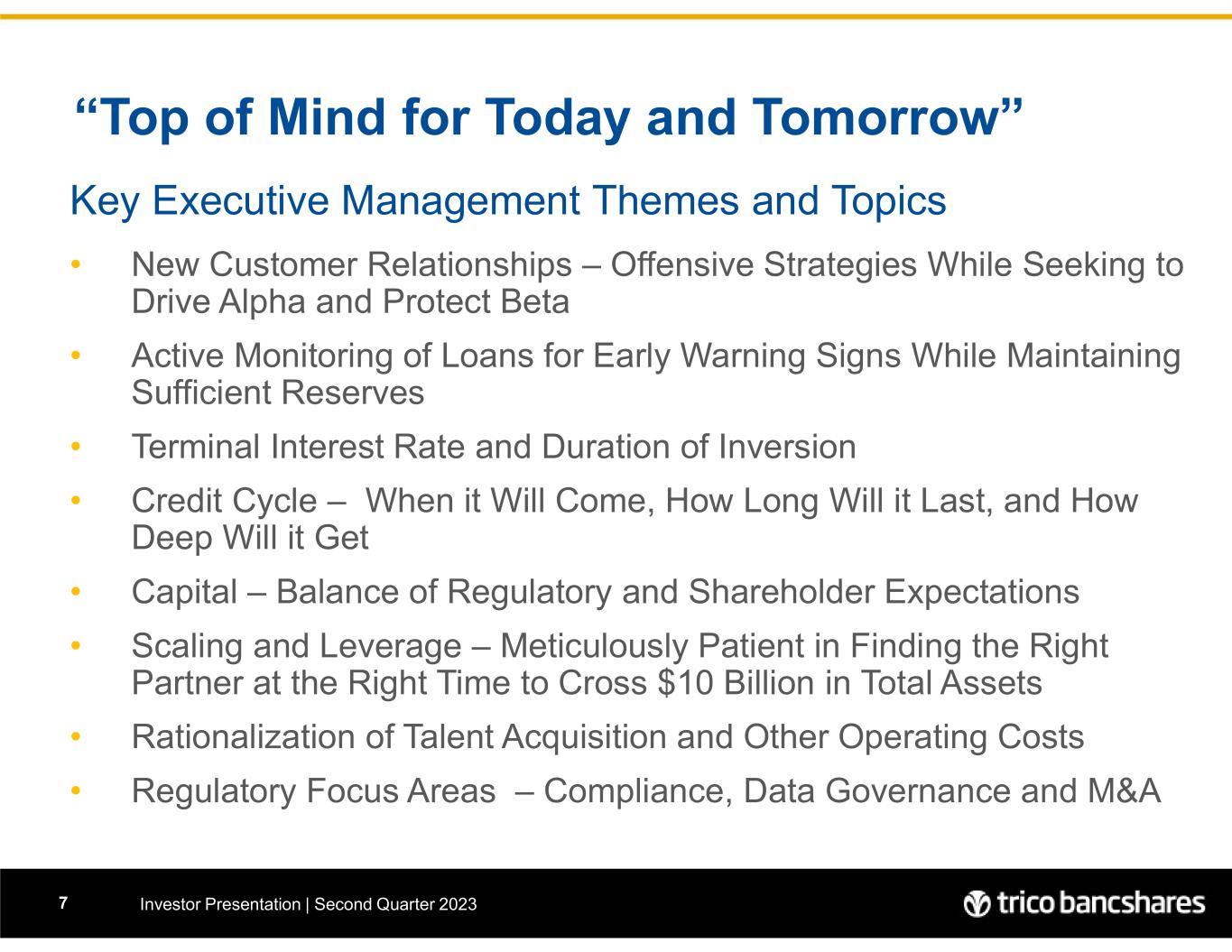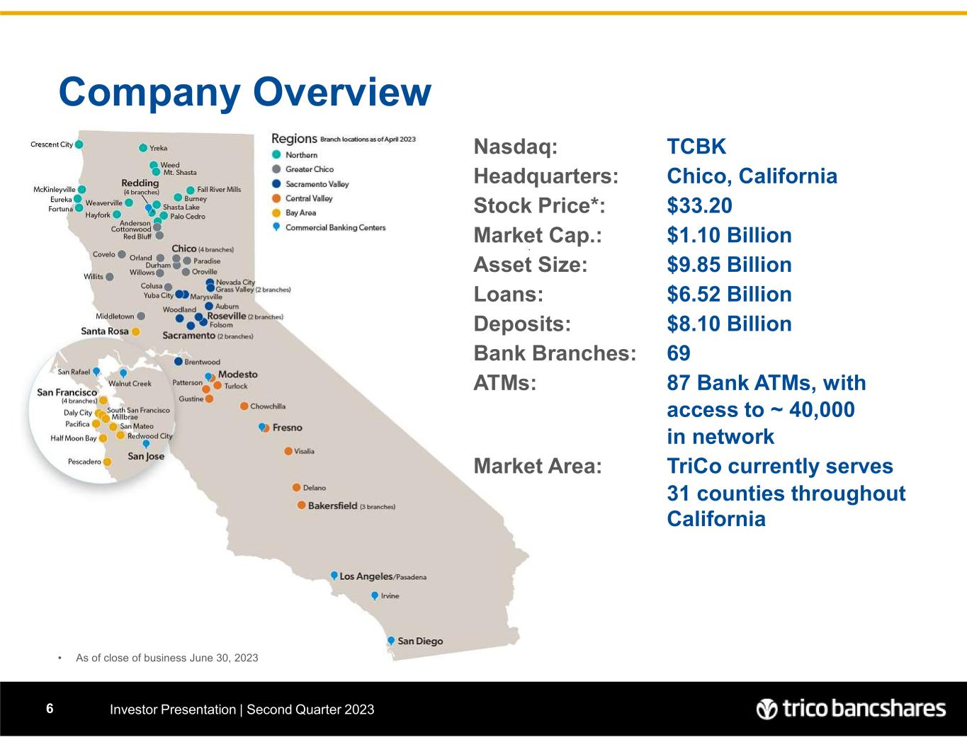 TRICO BANCSHARES ANNOUNCES SECOND QUARTER 2023 RESULTS