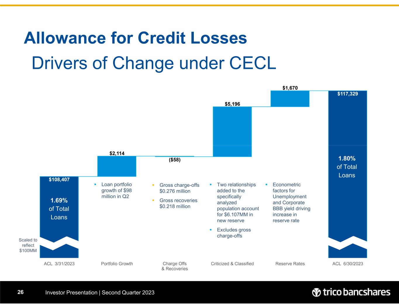 •The provision for credit losses for loans and debt securities was approximately $9.7 million during the quarter ended June 30, 2023, as compared to a provision for credit losses of $4.2 million during the trailing quarter ended March 31, 2023, and a provision for credit losses of $2.1 million for the three-month period ended June 30, 2022.