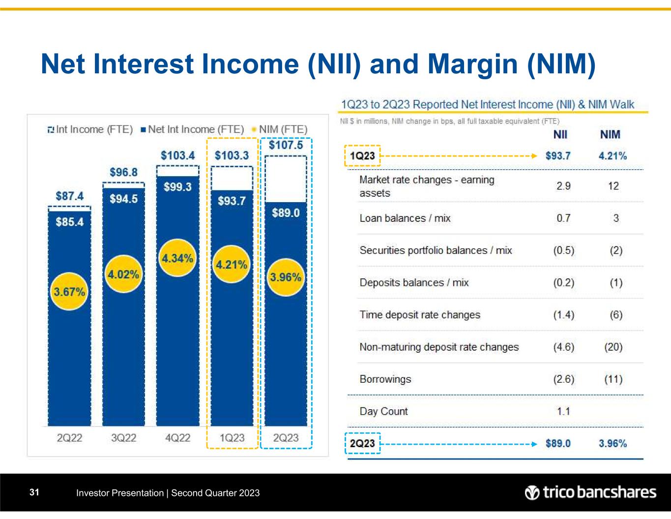 •Average yield on earning assets was 4.78%, an increase of 14 basis points over the 4.64% in the trailing quarter; net interest margin was 3.96%, a change of 25 basis points from 4.21% in the trailing quarter