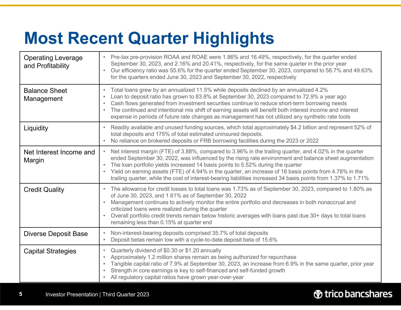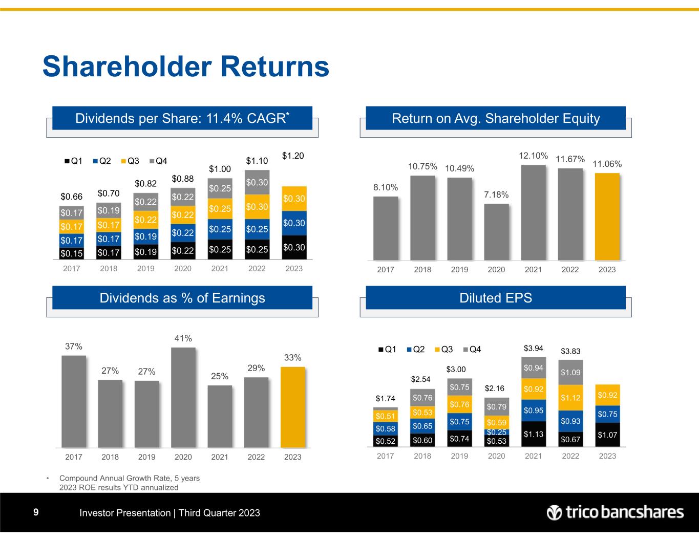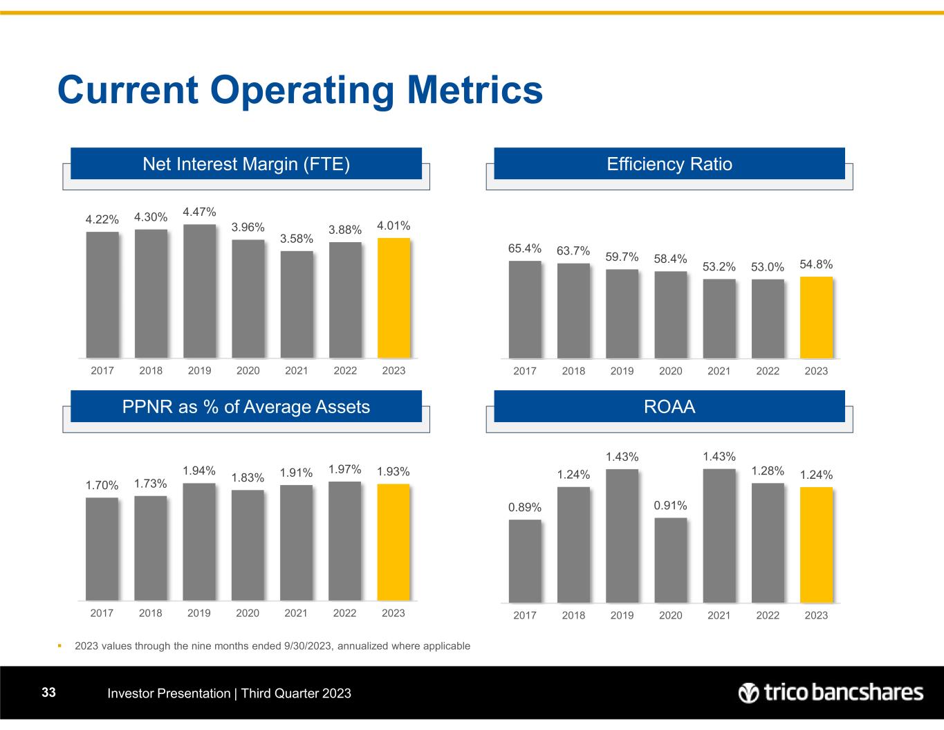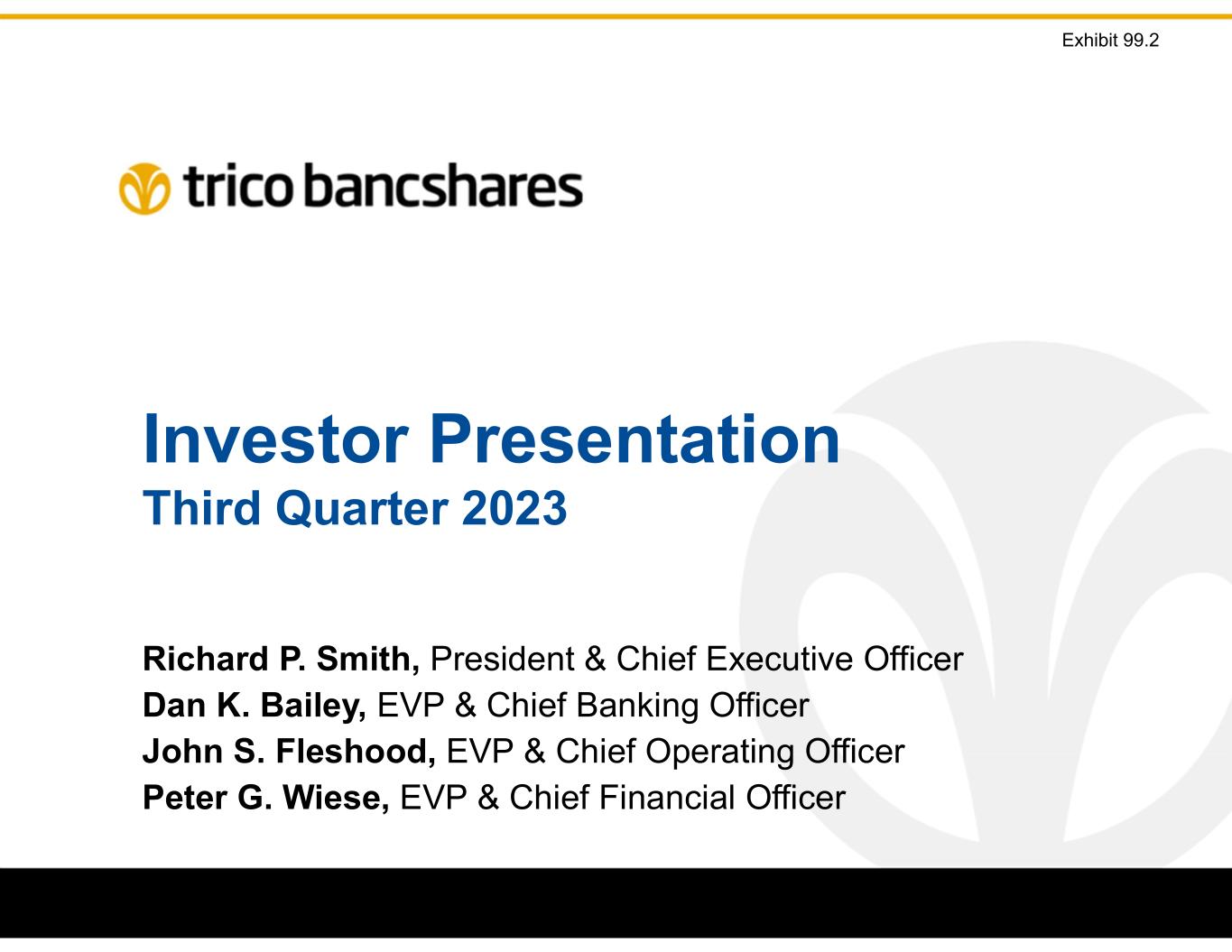 TRICO BANCSHARES ANNOUNCES THIRD QUARTER 2023 RESULTS