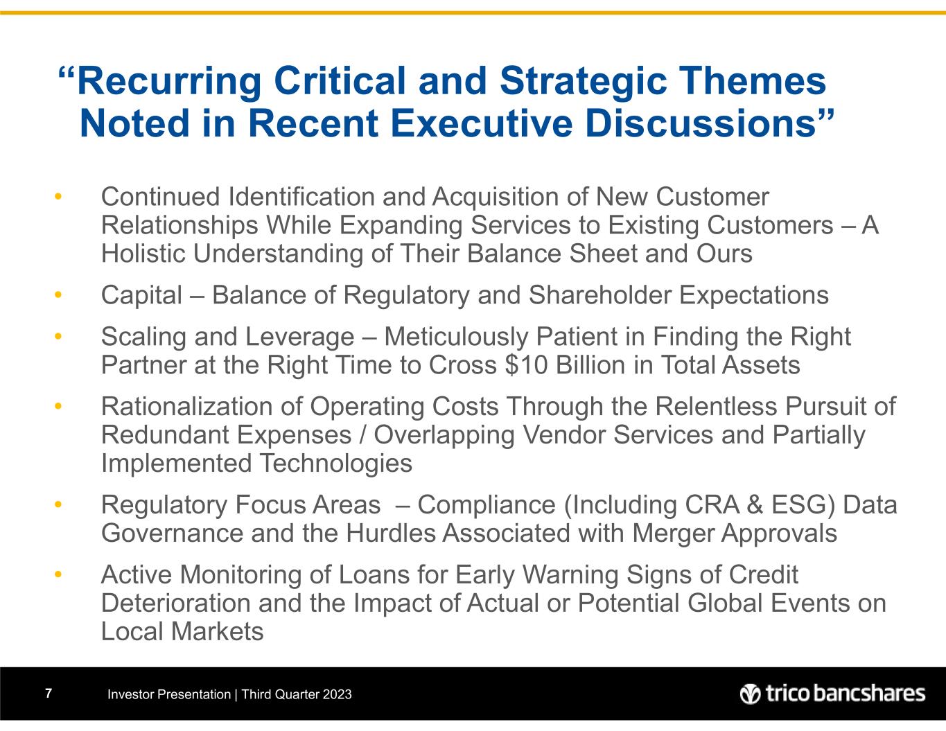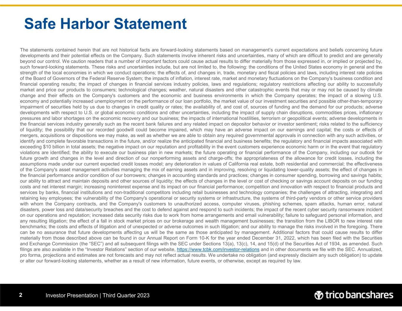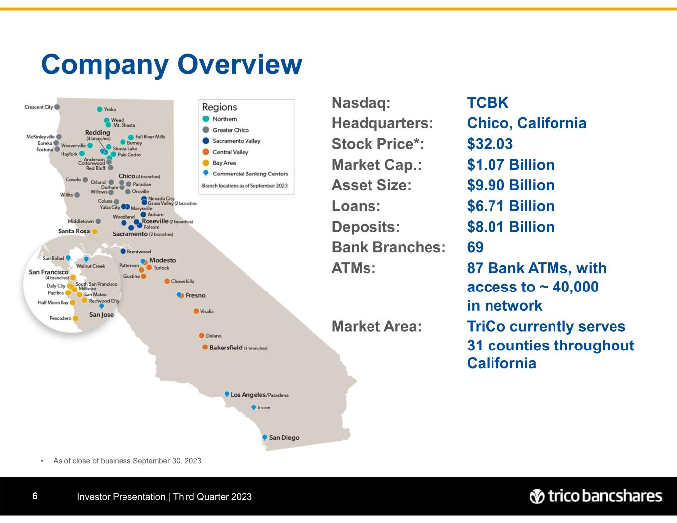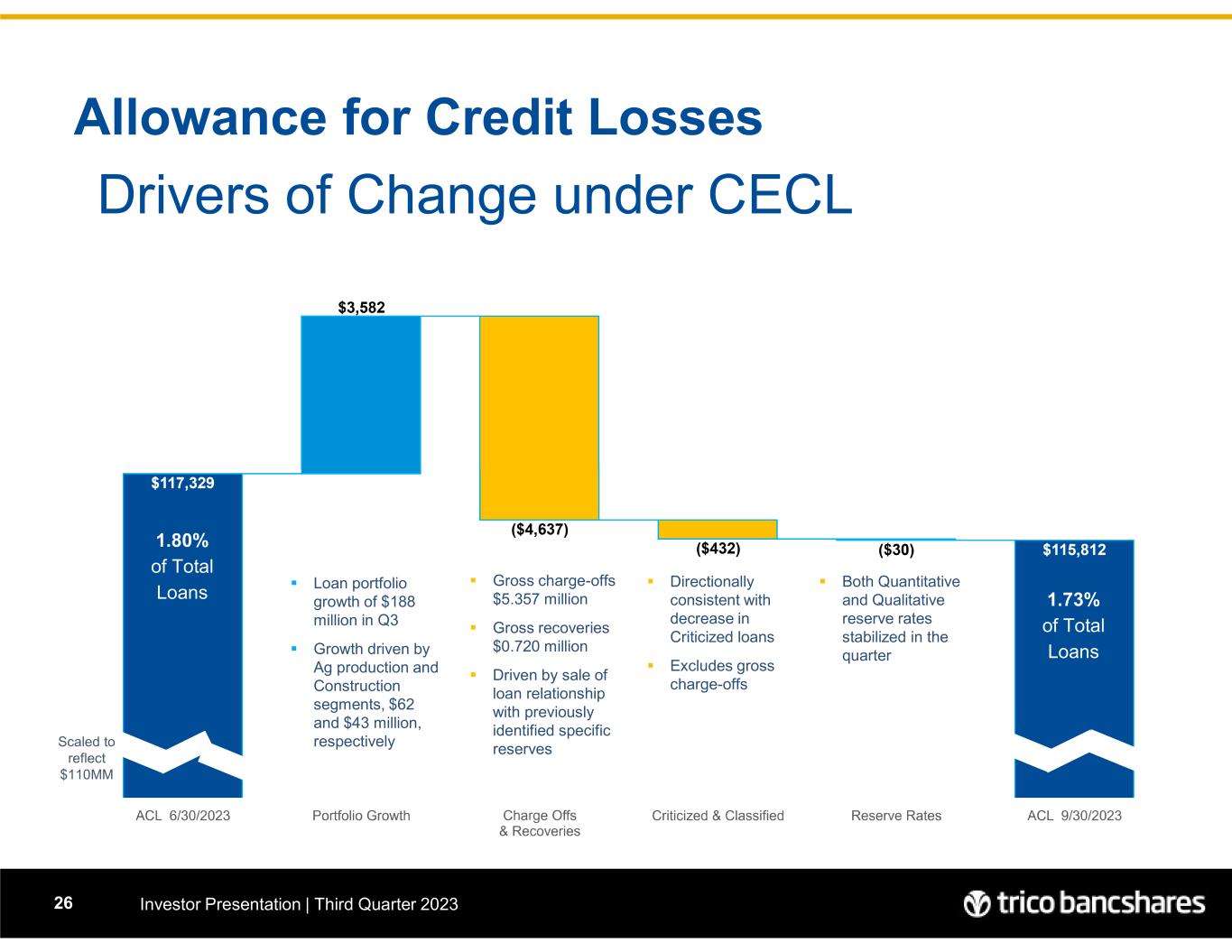 TRICO BANCSHARES ANNOUNCES THIRD QUARTER 2023 RESULTS