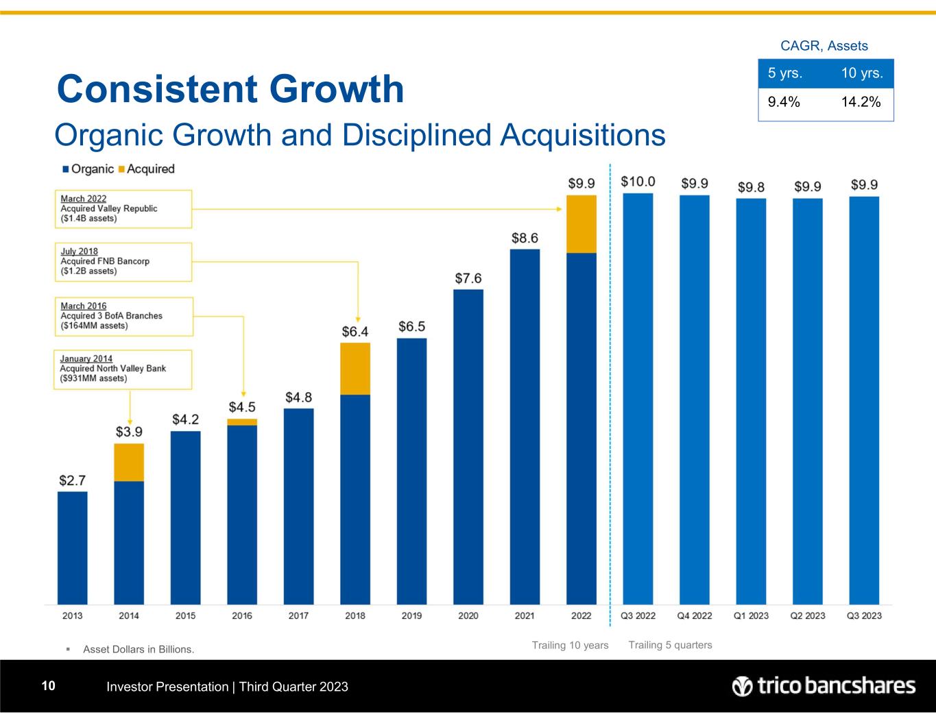 "Led by both margin and non-interest expenses, operating results for the quarter were improved over both the immediately preceding quarter and general market expectations," explained Rick Smith, President and Chief Executive Officer. Peter Wiese, EVP and Chief Financial Officer added, "We continue to be mindful about the unique economic circumstances in which we are operating and the need for long-term strategic perseverance consistent with the characteristic strengths for which we are known including consistency in shareholder returns, a conservative credit culture, expense control and depth and strength of our TriCo Team."