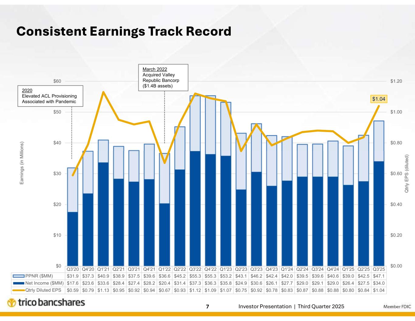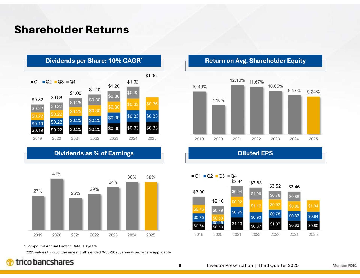 | トライコ・バンクシェアーズ、2025年度第3四半期の純利益は3,400万ドル、希薄化後EPSは1.04ドル |