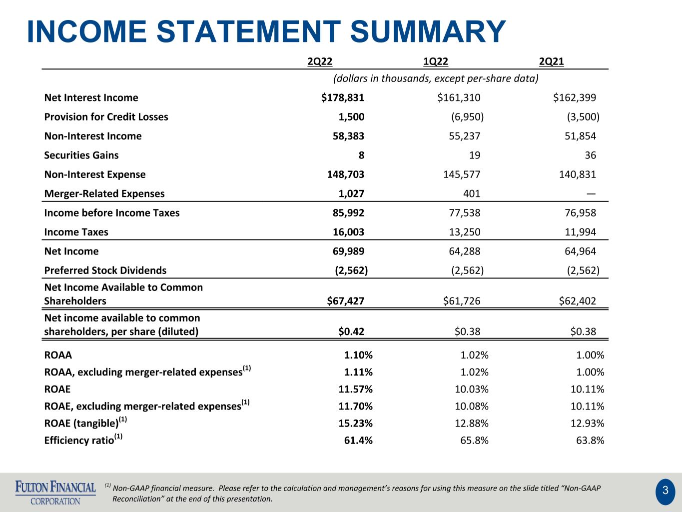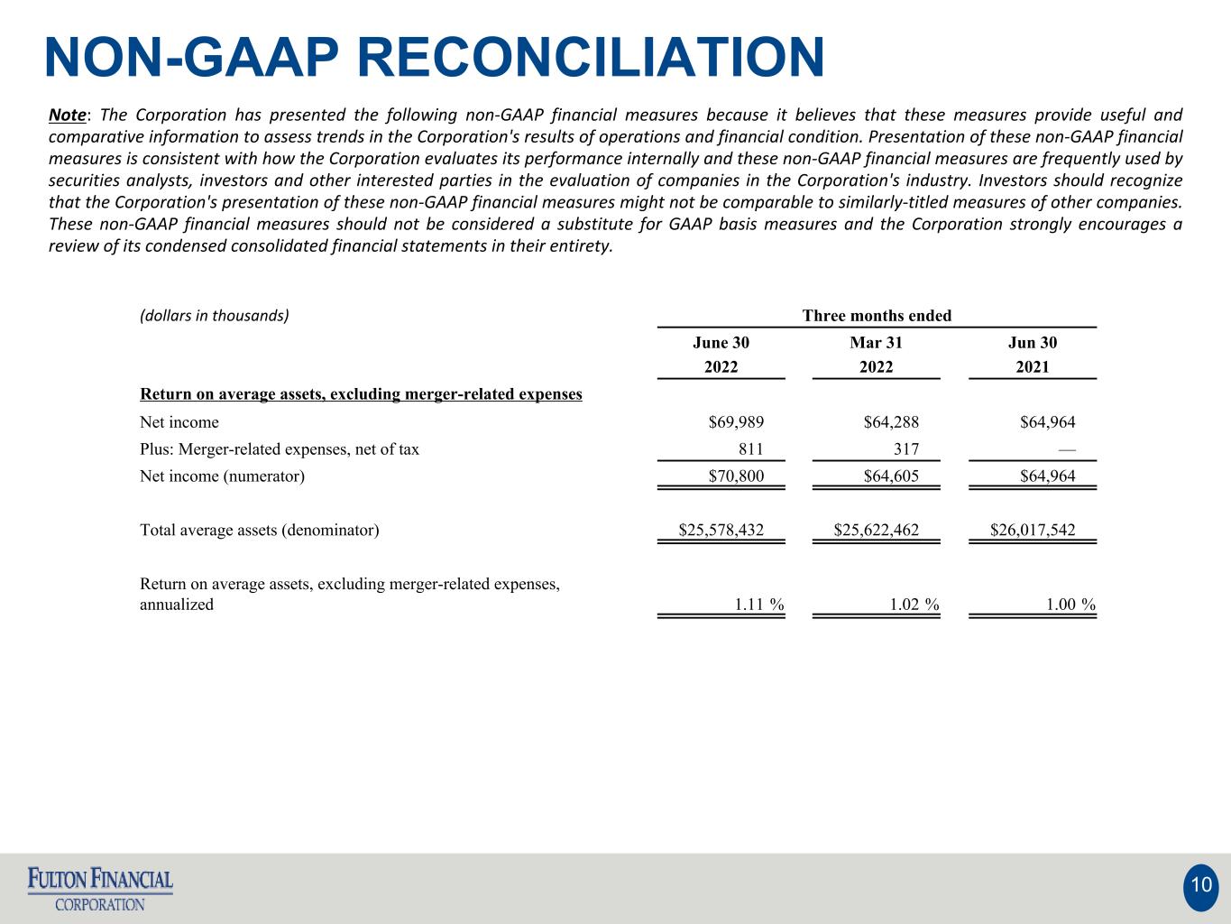| Return on average assets, excluding merger-related expenses, annualized | 1.11 | % | 1.02 | % | 0.94 | % | 1.13 | % | 1.00 | % | |||||||||||||||||||||||||||||||||||||