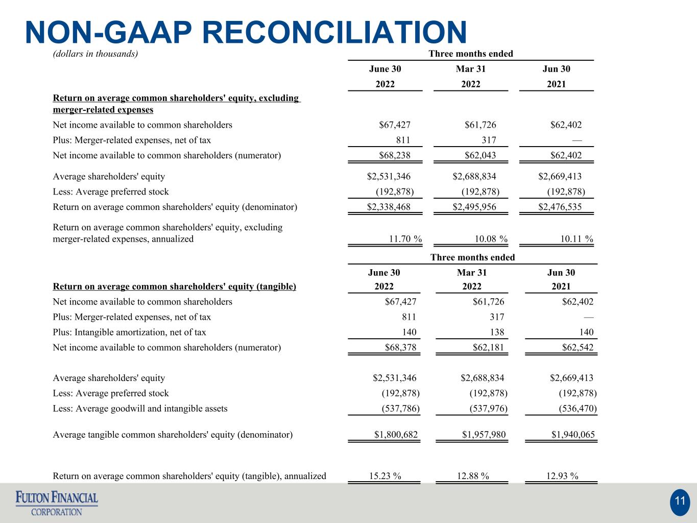 | Return on average common shareholders' equity (tangible), annualized | 15.23% | 12.88% | 11.89% | 14.56% | 12.93% | ||||||||||||||||||||||||||||||||||||||||||