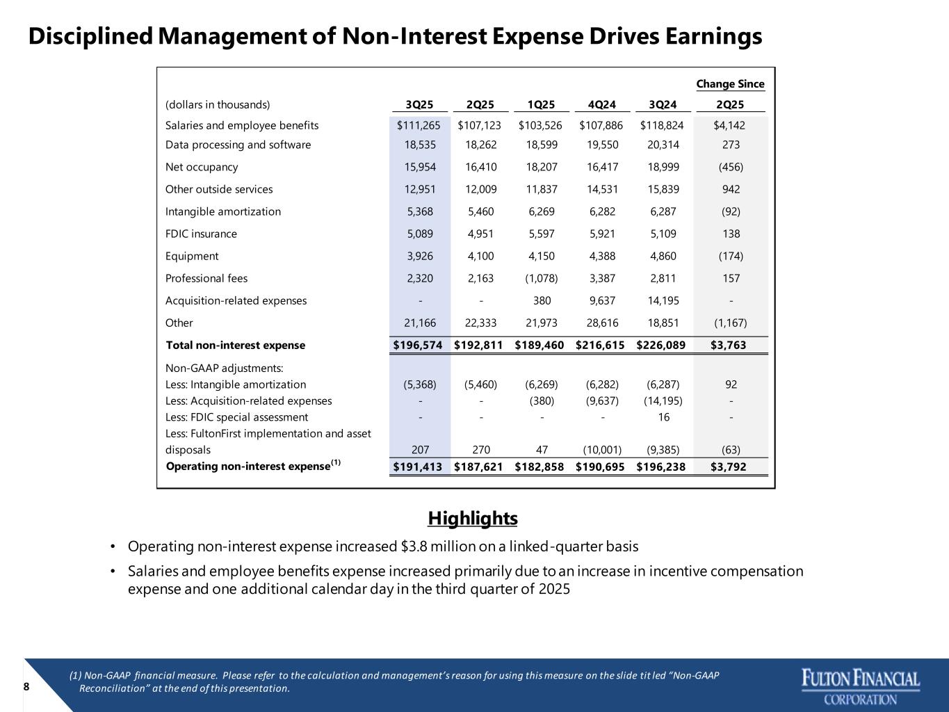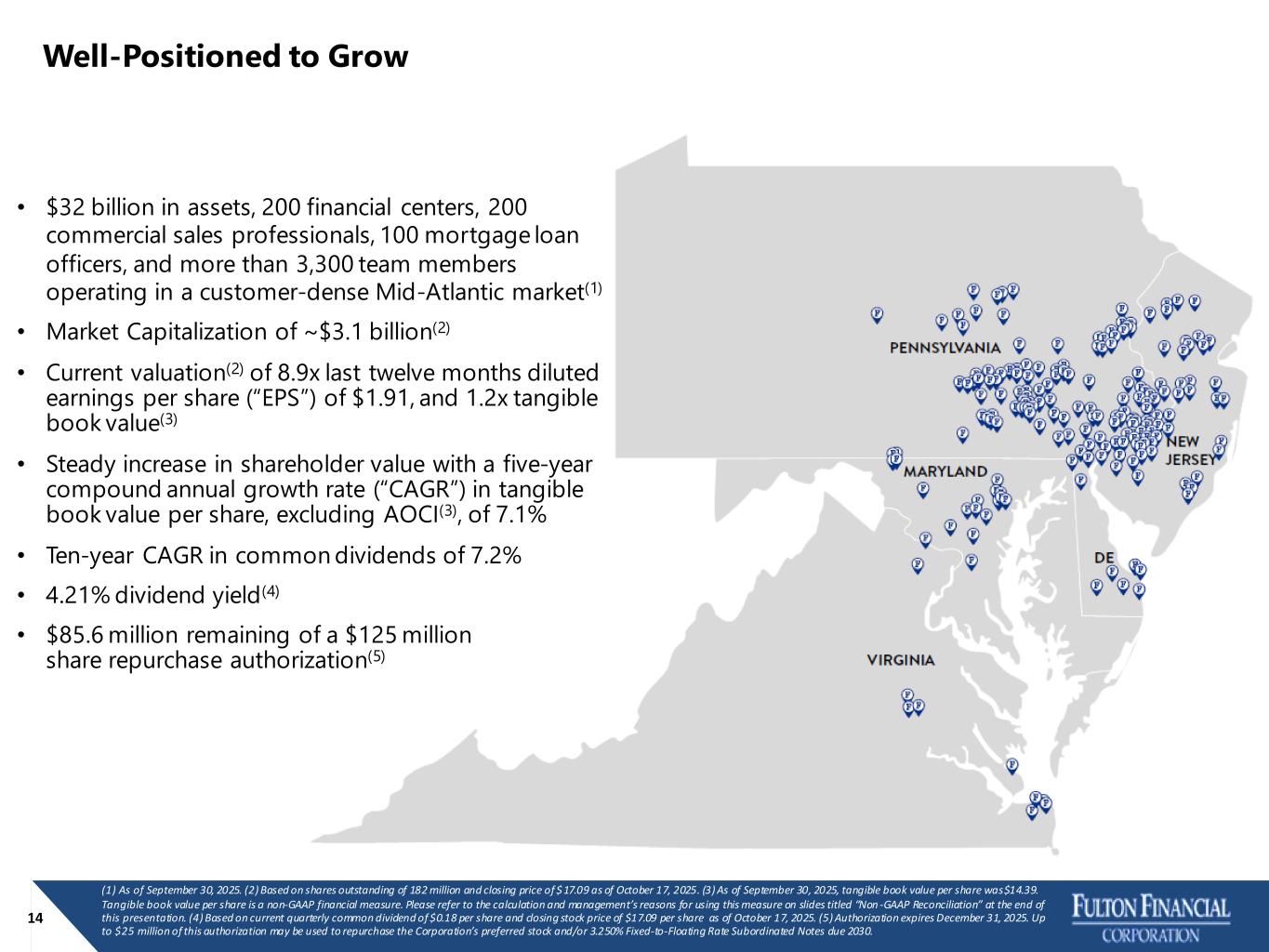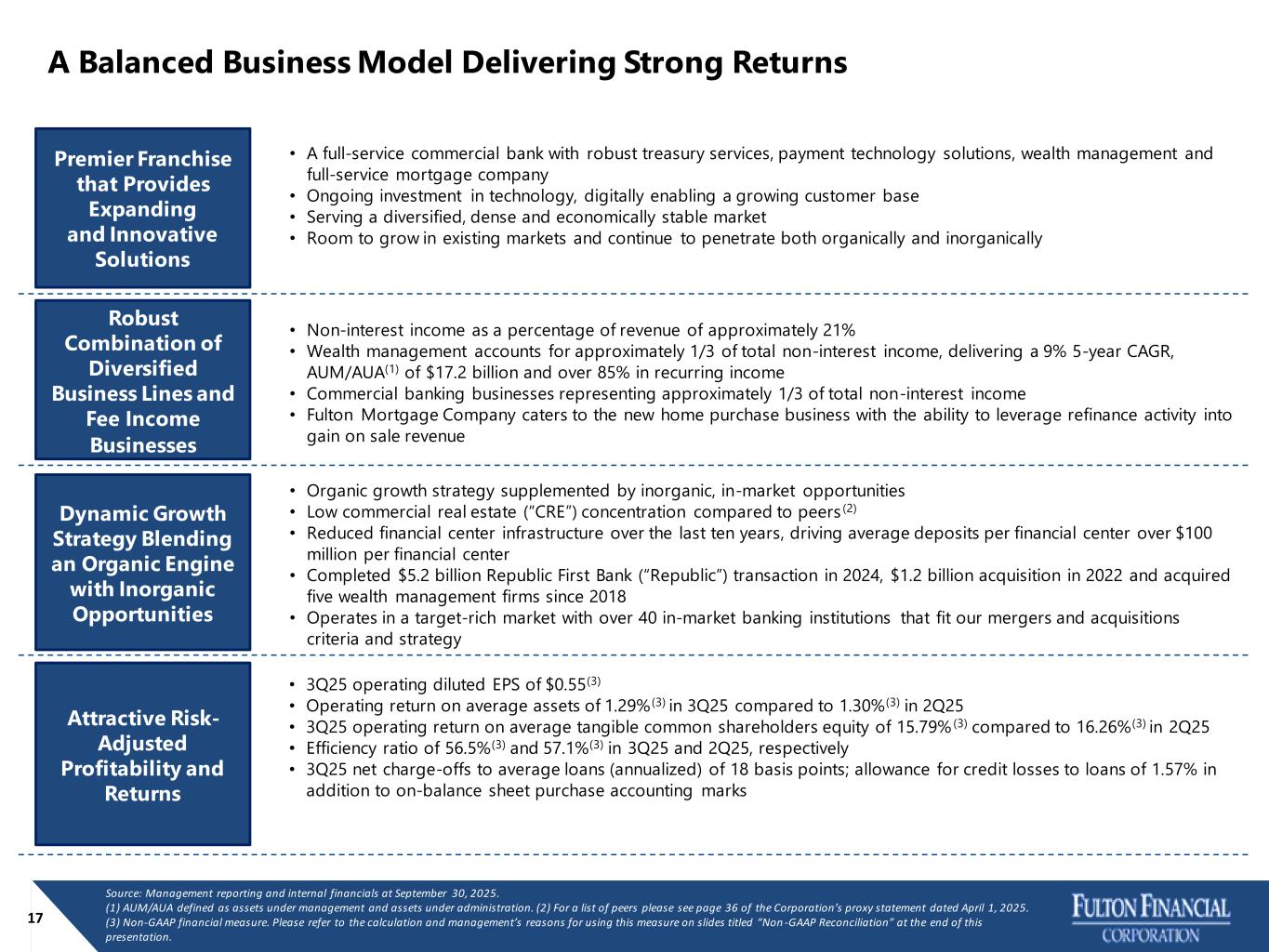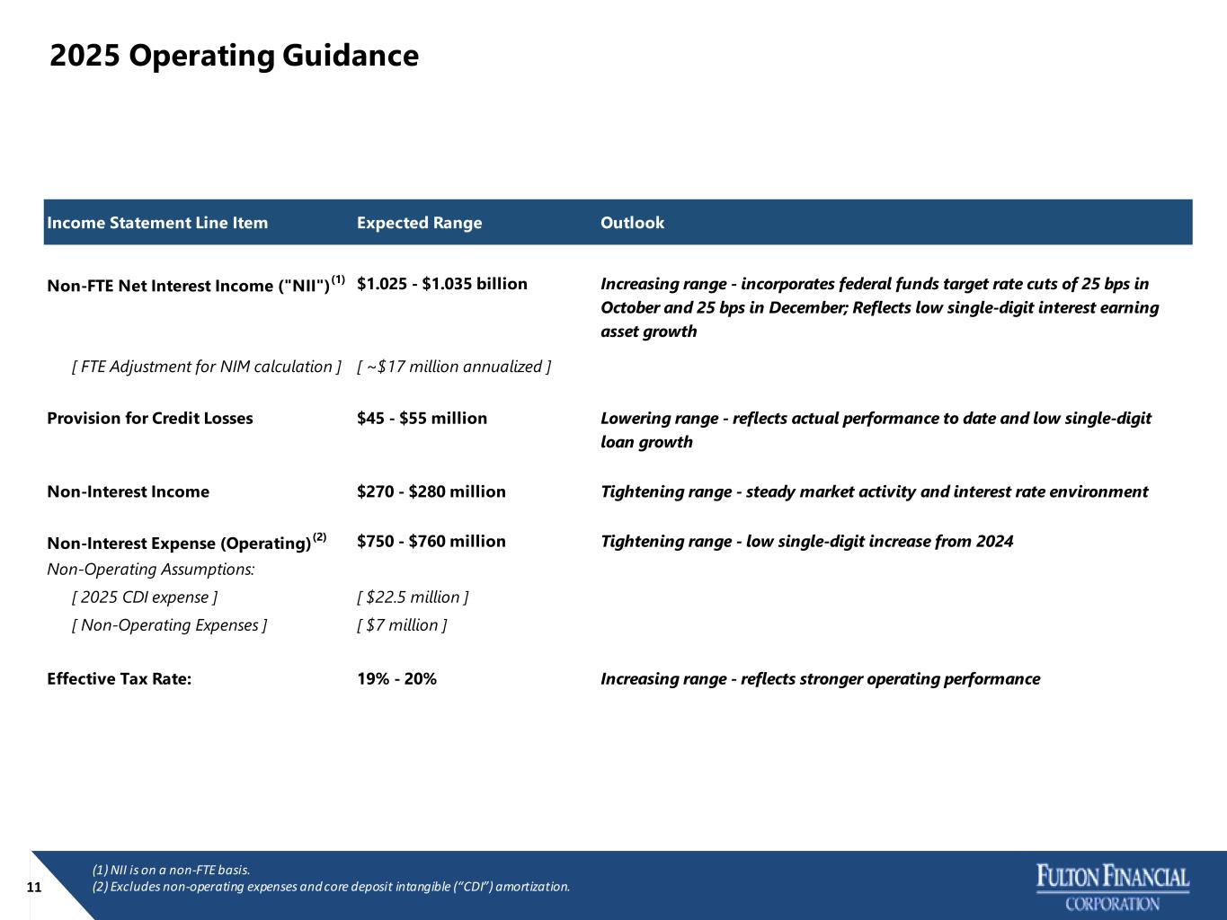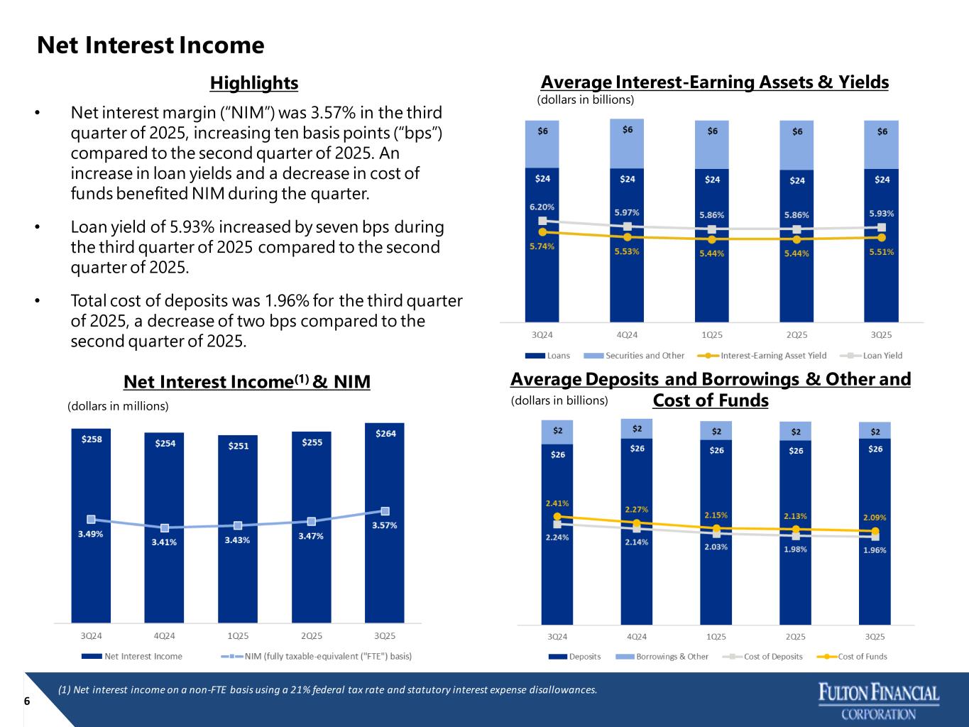 フルトン・ファイナンシャル・コーポレーション、2025年第3四半期決算を発表
