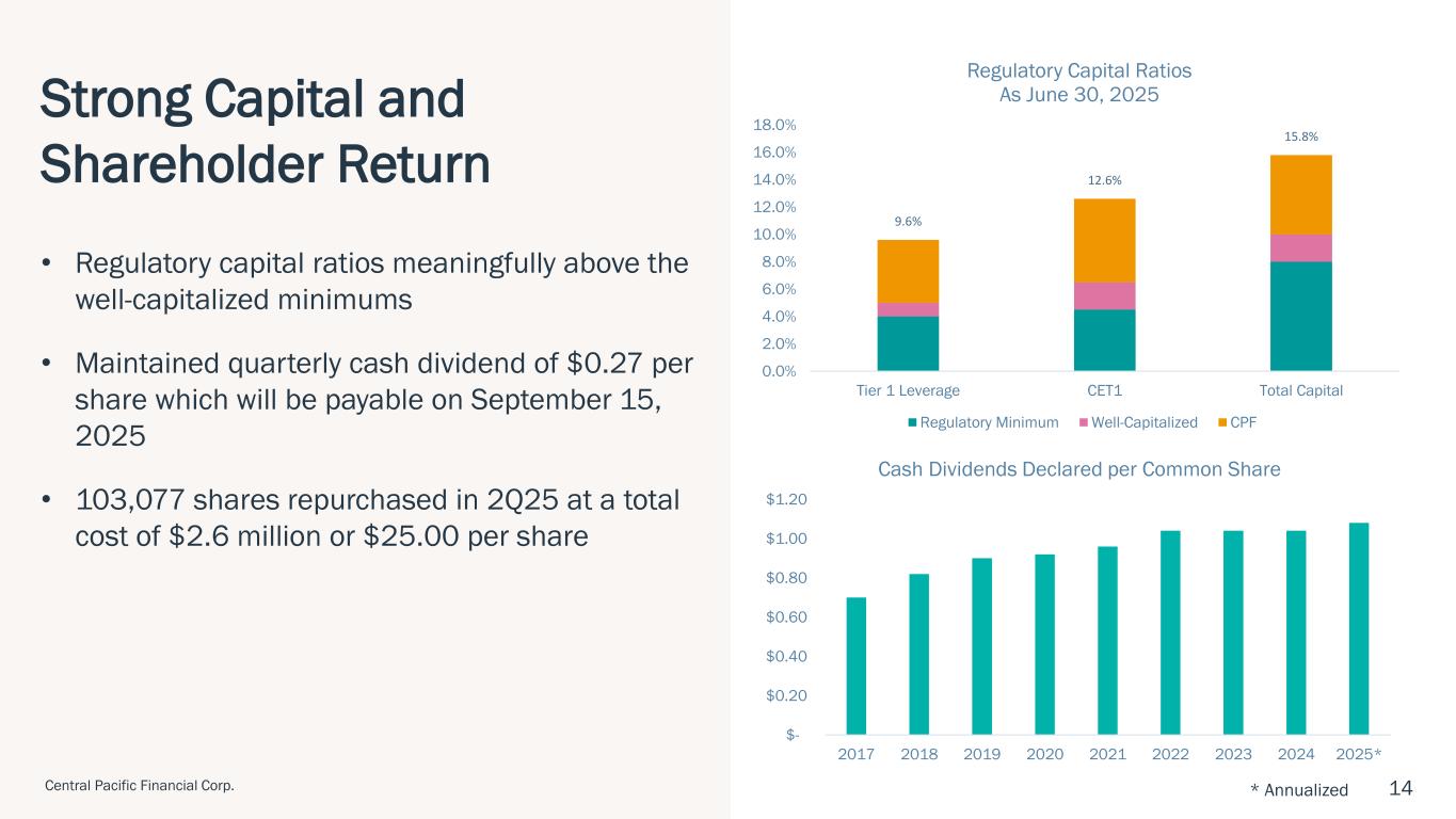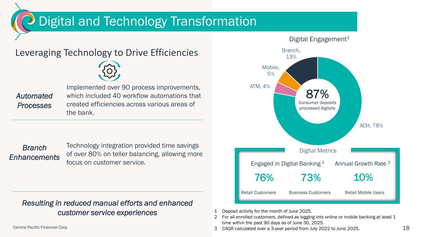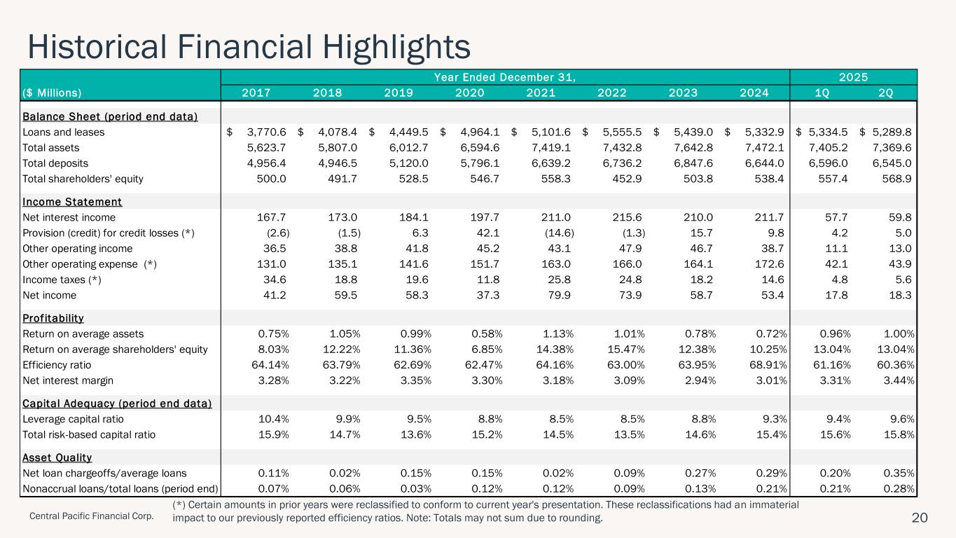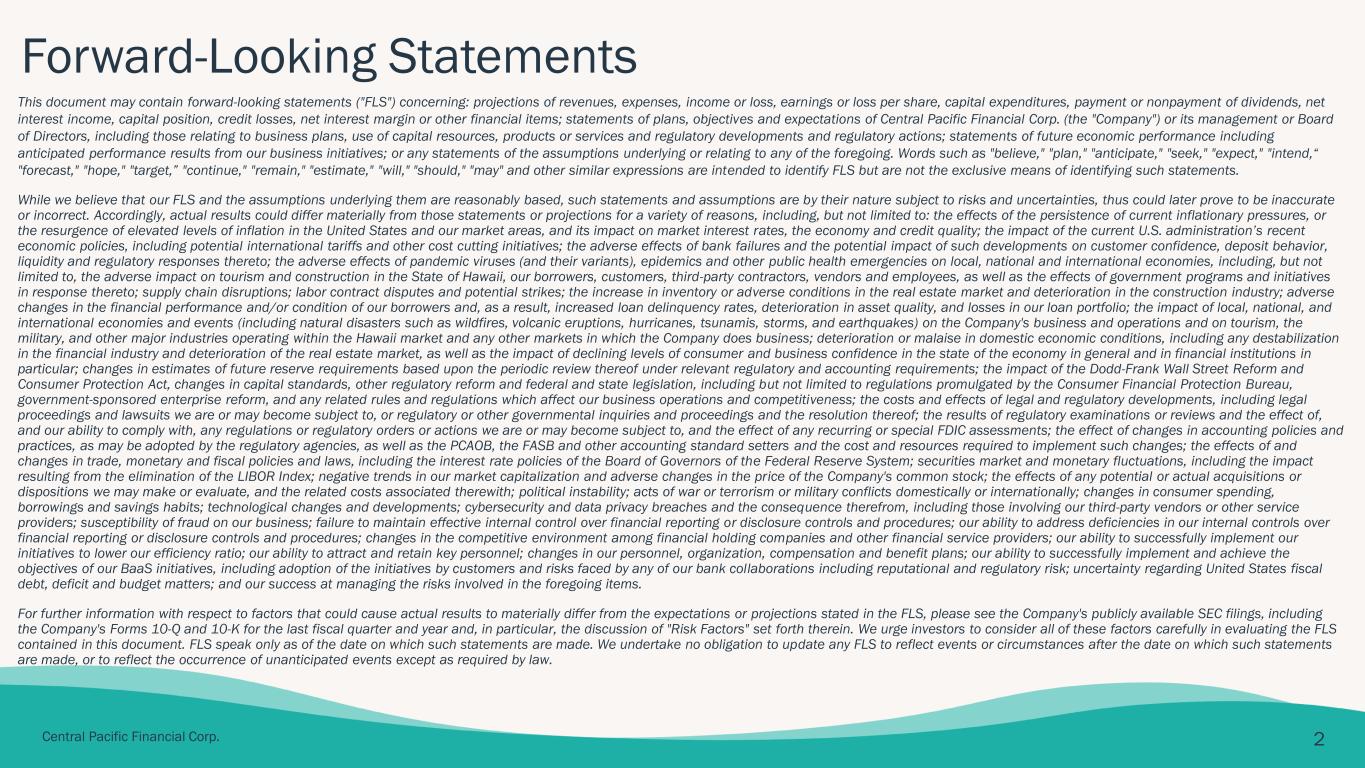 CENTRAL PACIFIC FINANCIAL CORP. BYLAWS (as amended and restated through July 24, 2025) ARTICLE I Principal Office The principal office of Central Pacific Financial Corp. (the “Corporation”) shall be maintained at 220 South King Street, Honolulu, Hawaii 96813, and shall be subject to change as the Board of Directors of the Corporation (the “Board of Directors”) may from time to time determine in accordance with law. Additional places of business may be established from time to time and hereafter changed or discontinued, in the manner prescribed by law. ARTICLE II Stockholders Section 1. The annual meeting of the stockholders shall be held at such time and place, if any, as determined by the President, Chief Executive Officer or the Board of Directors. At such meeting, any business within the powers of the Corporation, without special notice of such business may be transacted, except as limited by law, the Restated Articles of Incorporation of the Corporation, as amended (the “Articles of Incorporation”) or by these Bylaws. The Board of Directors may postpone, reschedule or cancel any annual meeting of stockholders previously scheduled by the Board of Directors. Section 2. At each annual meeting, the stockholders shall elect the directors of the Board of Directors (the “Directors”) to serve until their term expires as provided in Section 1 of Article III of these Bylaws and until their successors are duly elected and qualified, and shall transact such other business as may come before them. Section 3. Special meetings of the stockholders may be called at any time by the President, the Chief Executive Officer, the Chair of the Board of Directors, or a majority of the Board of Directors. The Secretary of the Corporation shall call a special meeting of stockholders upon the written demand to the Secretary of stockholders entitled to make such demand in the manner prescribed by law and these Bylaws. A special meeting shall be held at such date, time, and place, if any, as may be stated in the notice of meeting or, if authorized by the Board of Directors, by means of remote communication in accordance with Section 8 of this Article II. Such notice must state the purpose or purposes of the meeting. The business of special meetings shall be confined to that stated in the notice. In order that the Corporation may determine the stockholders entitled to notice of or to vote at a special meeting of stockholders or at any adjournment, postponement or rescheduling thereof, the Board of Directors will fix a record date, which date may not be more than seventy days before the meeting.