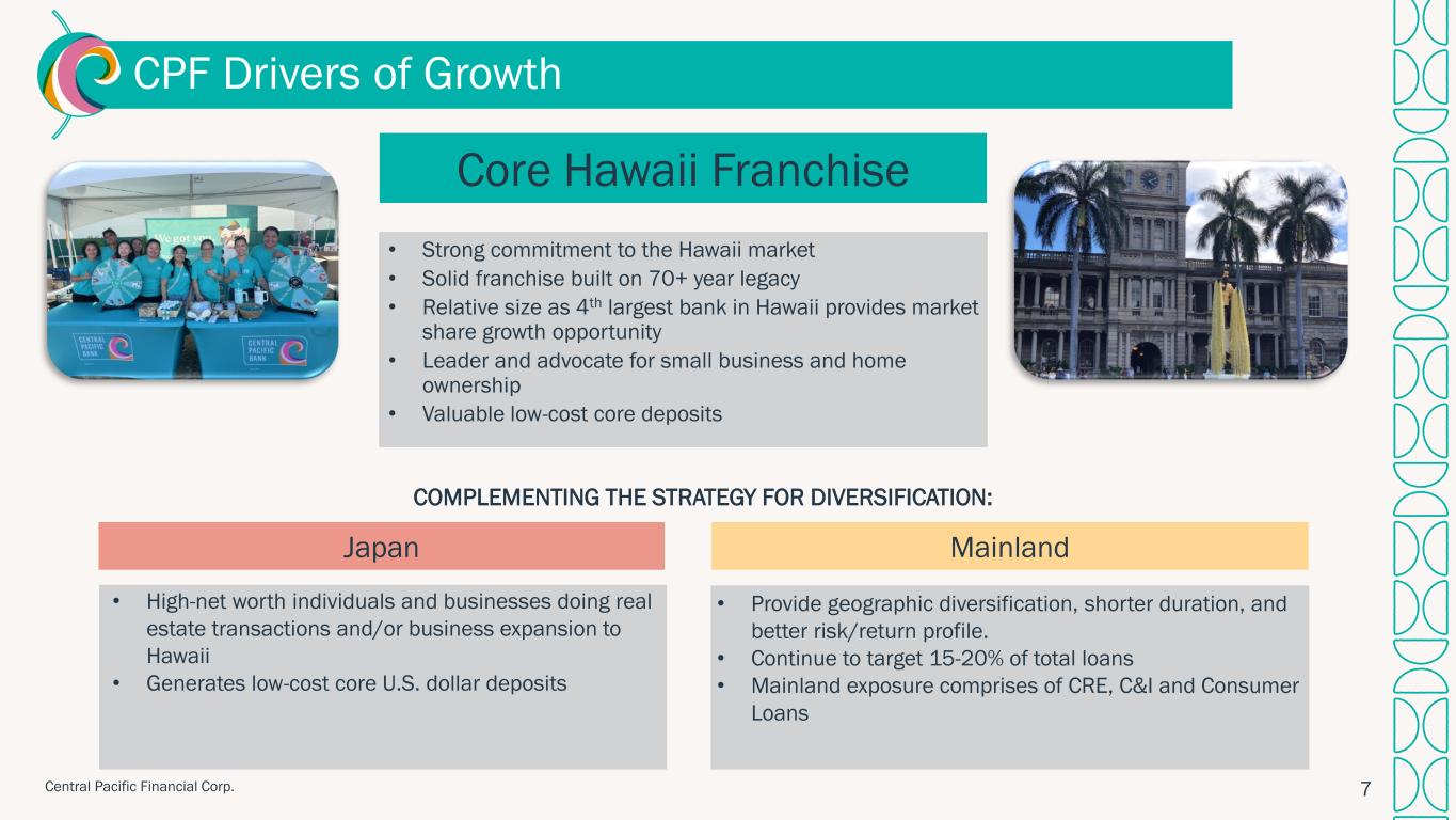•Central Pacific partnered with The Kyoto Shinkin Bank to expand its presence in Japan by fostering relationship-building opportunities among small to mid-sized customers of both institutions