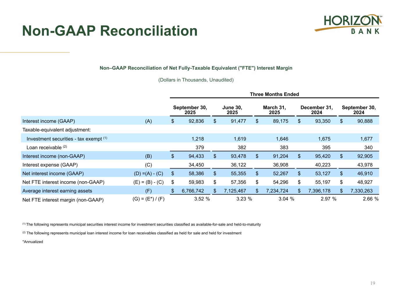 | Net FTE interest income (non-GAAP) (5) | $ | 59,983 | $ | 57,356 | $ | 48,927 | |||||||||||||||||||||||
