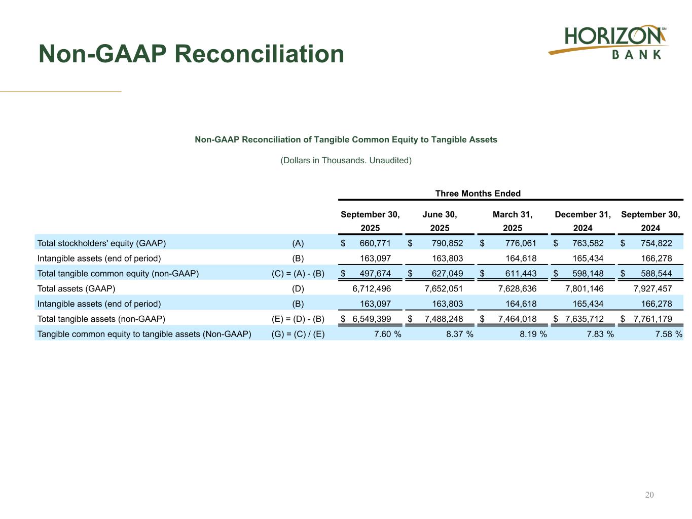 | Tangible common equity to tangible assets (Non-GAAP) | (G) = (C) / (E) | 7.60 | % | 8.37 | % | 8.19 | % | 7.83 | % | 7.58 | % | |||||||||||||||||||||