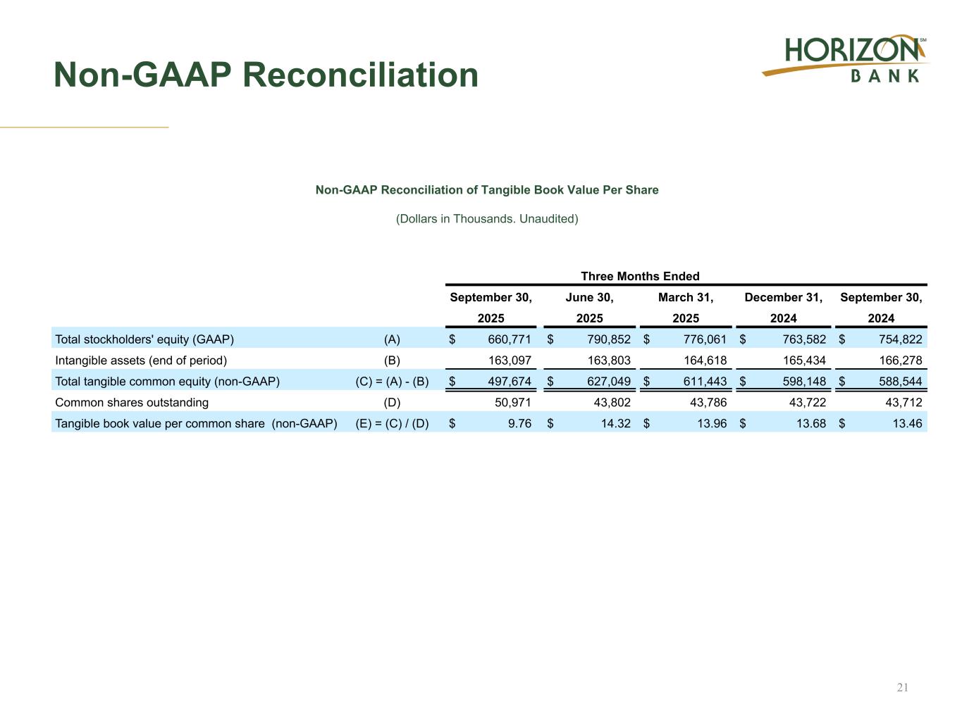 | Tangible book value per common share (non-GAAP) | (E) = (C) / (D) | $ | 9.76 | $ | 14.32 | $ | 13.96 | $ | 13.68 | $ | 13.46 | |||||||||||||||||||||