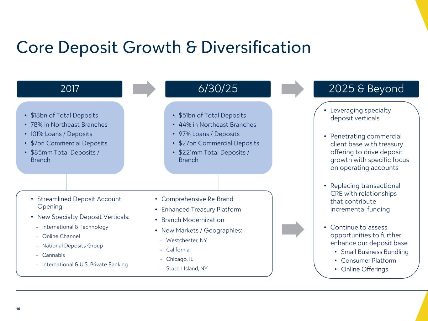 -預金預金残高:2025年6月30日現在の総預金残高は、2025年3月31日現在の500億ドルから7億5,940万ド ル増加し、507億ドルとなりました。これは主に、2025年第2四半期中の直接および間接(仲介)顧客定期預金の 増加によるものですが、貯蓄預金、NOW預金、短期金融市場預金のカテゴリーにおける特定の間接顧客預金の流 出により一部相殺されました。2025年6月30日現在の無利息預金は、2025年3月31日から1億1,820万ドル増加し、117億ドルとなった。詳細は後述の「預金」の項を参照のこと。
