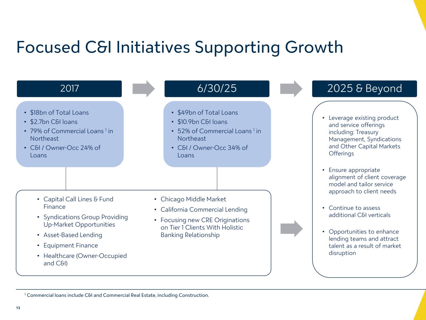 -信用の質:信用の質:2025 年第 2 四半期の正味貸倒損失は 3,780 万ドルで、これに対して 2025 年第 1 四半期は 4,190 万ドル、2024 年第 2 四半期は 3,680 万ドルでした。2025年6月30日現在、未収延滞債権は3億5,440万ドル(総貸付金の0.72%)となり、これに対して2025年3月31日現在 は3億4,650万ドル(総貸付金の0.71%)でした。2025年6月30日時点の延滞債権(支払期日が30日以上経過し、なお利息が発生している債権)総額は、2025年3月31日時点の5,170万ドル(総債権額の0.11%)から1億4,750万ドル増加し、1億9,920万ドル(総債権額の0.40%)となった。この増加の大部分は3件のCREローンに関連するもので、うち2件は2025年7月に支払期日を過ぎていない。詳細は以下の「信用の質」の項を参照のこと。