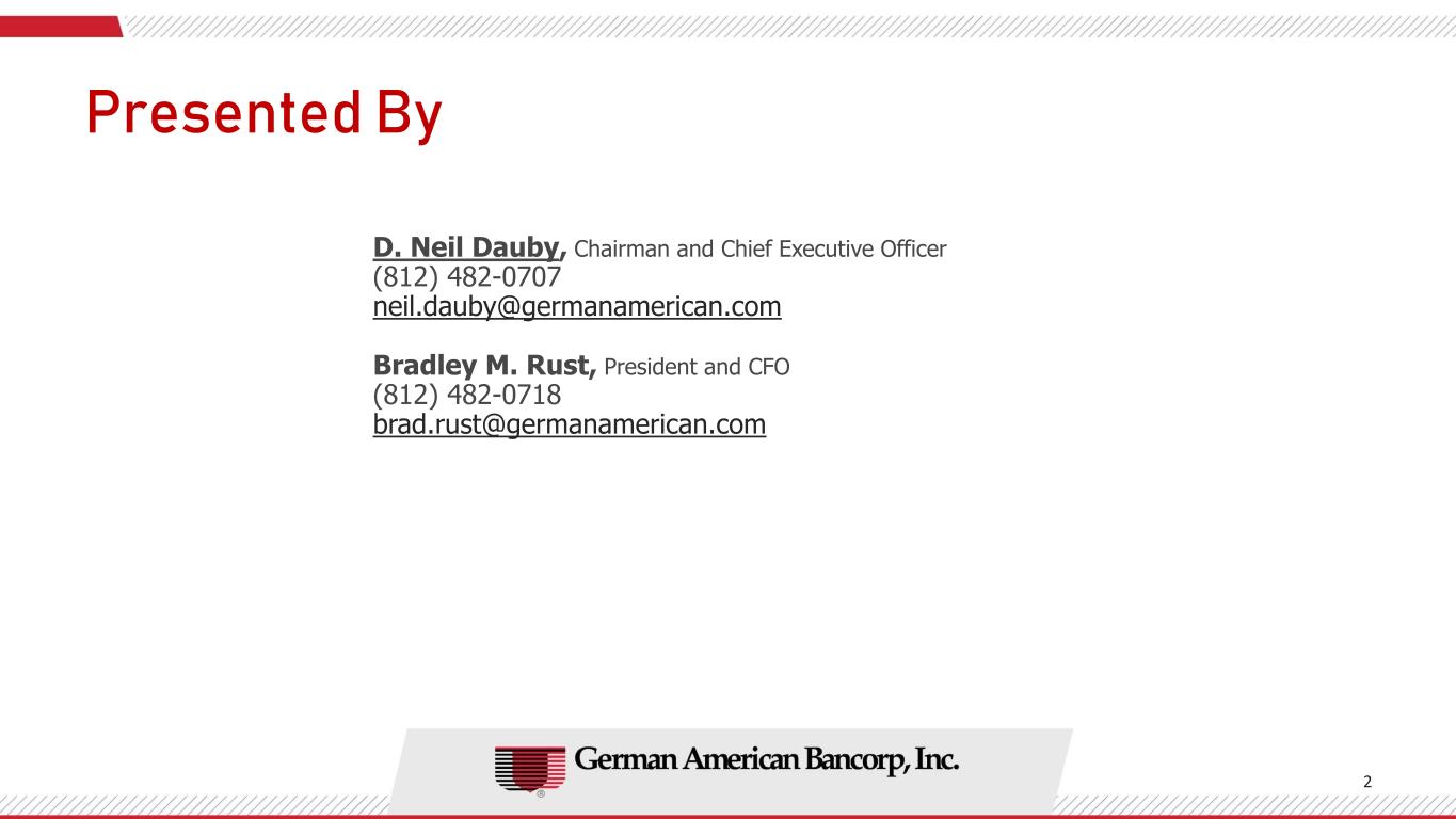 Presented By D. Neil Dauby, Chairman and Chief Executive Officer (812) 482-0707 neil.dauby@germanamerican.com Bradley M. Rust, President and CFO (812) 482-0718 brad.rust@germanamerican.com 2