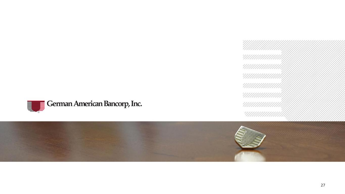 USE OF NON-GAAP FINANCIAL MEASURES 26 Non-GAAP Reconciliation – Net Interest Margin (Dollars in Thousands) 6/30/2024 6/30/2025 6/30/2024 6/30/2025 Net Interest Income (FTE) from above $ 47,497 $ 74,425 $ 94,136 $ 142,316 Less: Accretion of Discount on Acquired Loans 293 3,483 653 7,675 Adjusted Net Interest Income (FTE) $ 47,204 $ 70,942 $ 93,483 $ 134,641 Average Earning Assets $ 5,709,014 $ 7,605,113 $ 5,649,925 $ 7,265,693 Net Interest Margin (FTE) 3.34% 3.92% 3.34% 3.94% Adjusted Net Interest Margin (FTE) 3.32% 3.74% 3.32% 3.73% Non-GAAP Reconciliation – Net Income and Earnings Per Share (Dollars in Thousands, except per share amounts) 6/30/2024 6/30/2025 6/30/2024 6/30/2025 Adjusted Net Income $ 20,351 $ 32,058 $ 39,373 $ 59,345 Weighted Average Shares Outstanding 29,667,770 37,479,342 29,633,631 36,087,762 Earnings Per Share, as reported $ 0.69 $ 0.84 $ 1.33 $ 1.16 Earnings Per Share, as adjusted $ 0.69 $ 0.86 $ 1.33 $ 1.64 Six Months Ended Six Months Ended Three Months Ended Three Months Ended