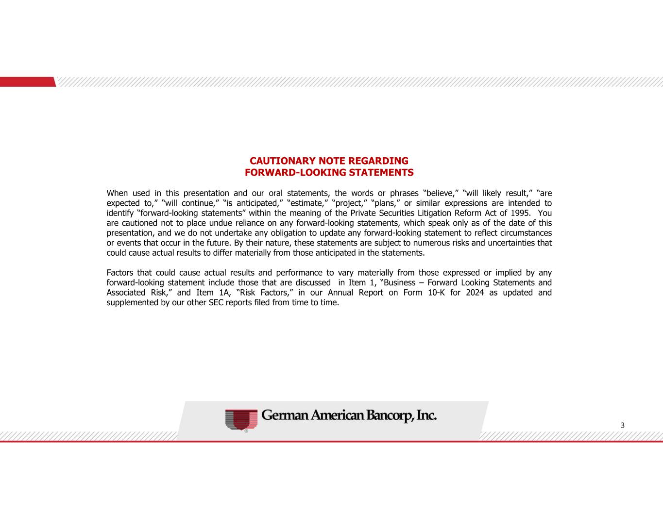 Symbol: GABC November 6, 2025 Hovde Financial Services Conference German American 1 Scan for electronic presentation