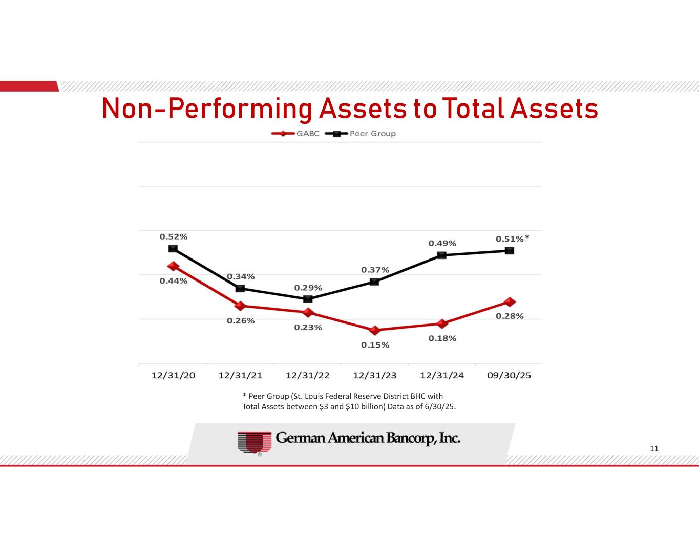 Non-Performing Assets to Total Assets 11 * Peer Group (St. Louis Federal Reserve District BHC with Total Assets between $3 and $10 billion) Data as of 6/30/25.