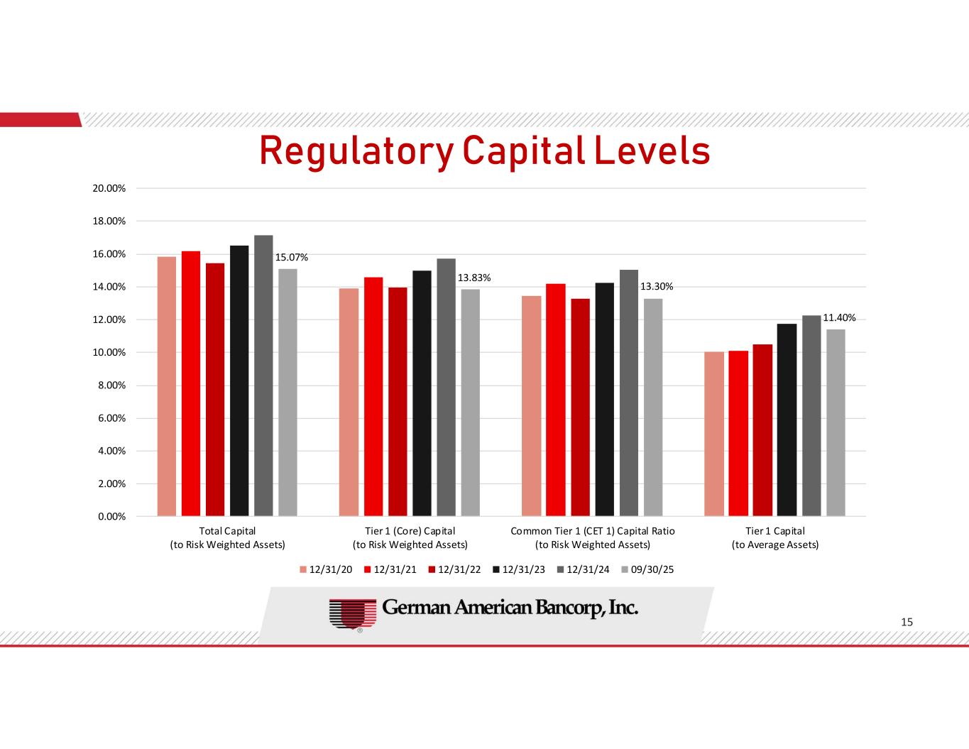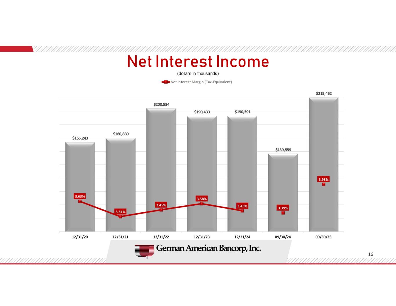 Regulatory Capital Levels 15 15.07% 13.83% 13.30% 11.40% 0.00% 2.00% 4.00% 6.00% 8.00% 10.00% 12.00% 14.00% 16.00% 18.00% 20.00% Total Capital (to Risk Weighted Assets) Tier 1 (Core) Capital (to Risk Weighted Assets) Common Tier 1 (CET 1) Capital Ratio (to Risk Weighted Assets) Tier 1 Capital (to Average Assets) 12/31/20 12/31/21 12/31/22 12/31/23 12/31/24 09/30/25