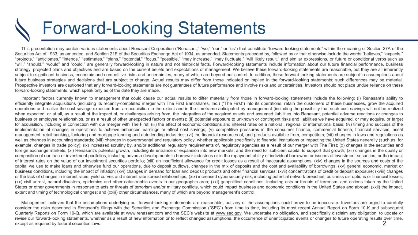 ミシシッピ州トゥペロ(2025年4月22日)-レナント・コーポレーション(NYSE: RNST)(以下「当社」)は本日、2025年第1四半期の業績を発表した。