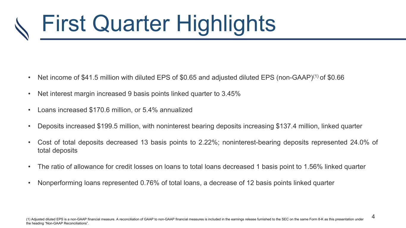 「当四半期の業績は、堅調な収益性と貸出・預金残高の伸びにより、好調なスタートを切ることができました。「4月1日にThe First Bancshares, Inc.との合併を完了し、彼らのチームをRenasantに迎えました。4月1日にThe First Bancshares, Inc.との合併を完了し、彼らのチームをRenasantに迎え入れることができました。