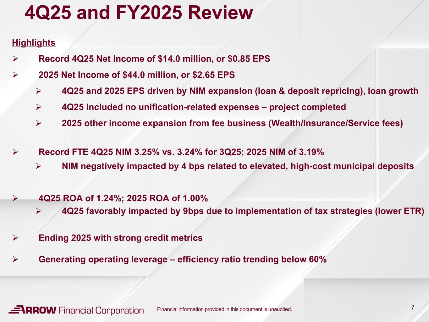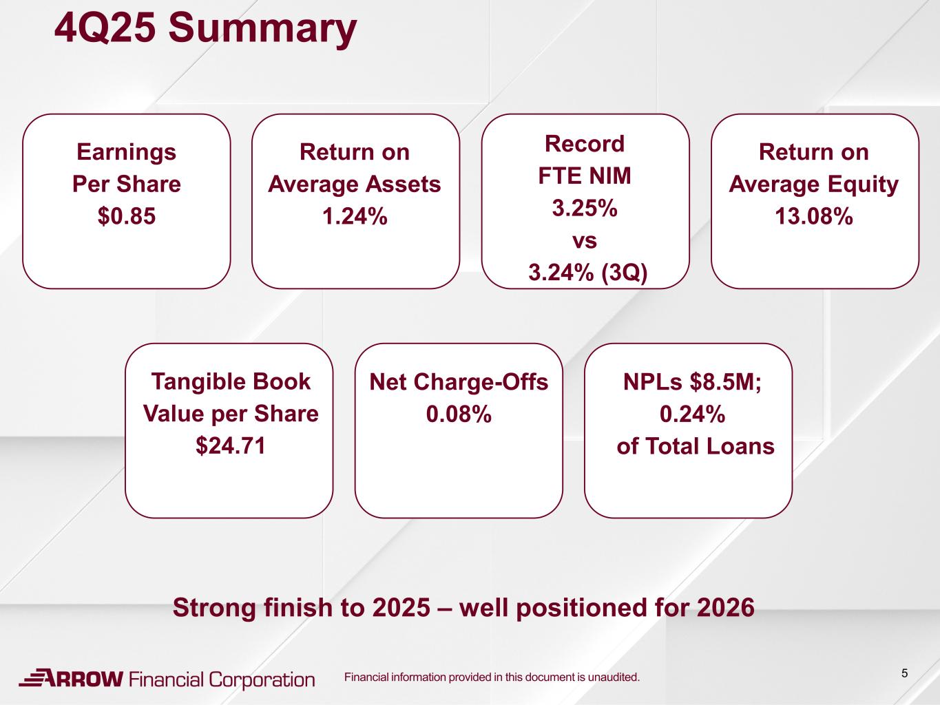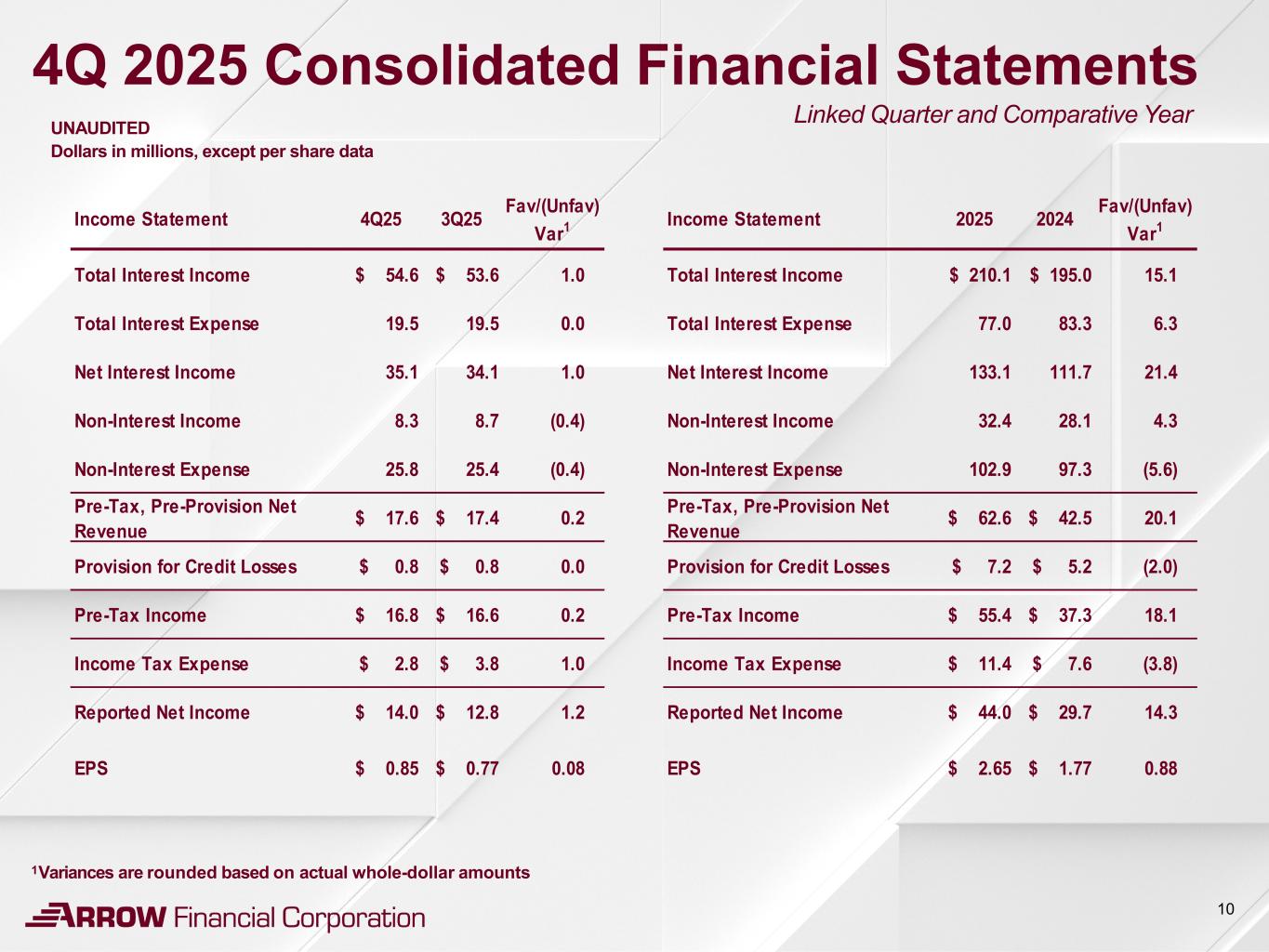 Exhibit 99.2 Arrow Financial Corporation Fourth Quarter 2025 Investor Presentation