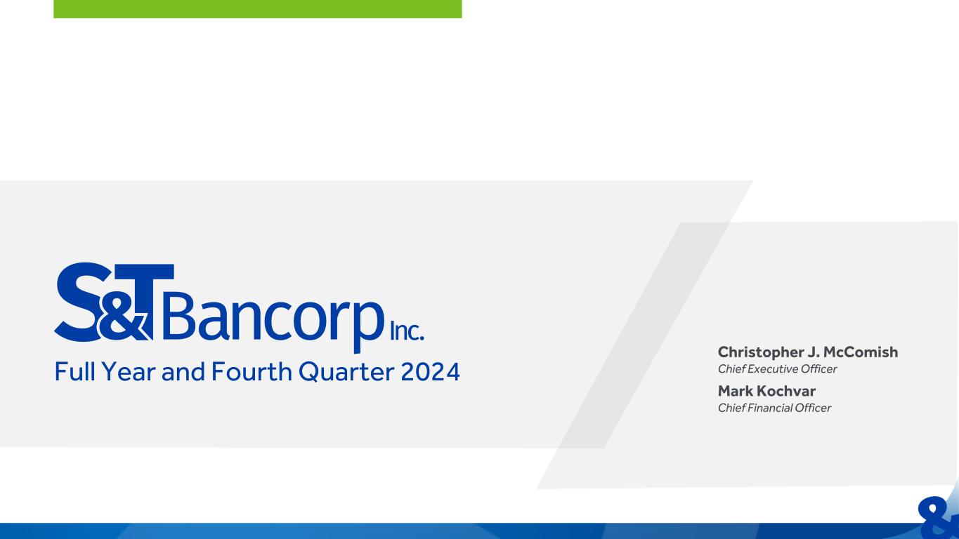 Forward Looking Statements and Risk Factors This information contains or incorporates statements that we believe are “forward-looking statements” within the meaning of the Private Securities Litigation Reform Act of 1995. Forward-looking statements generally relate to our financial condition, results of operations, plans, objectives, outlook for earnings, revenues, expenses, capital and liquidity levels and ratios, asset levels, asset quality, financial position and other matters regarding or affecting S&T and its future business and operations. Forward-looking statements are typically identified by words or phrases such as “will likely result,” “expect,” “anticipate,” “estimate,” “forecast,” “project,” “intend,” “believe,” “assume,” “strategy,” “trend,” “plan,” “outlook,” “outcome,” “continue,” “remain,” “potential,” “opportunity,” “comfortable,” “current,” “position,” “maintain,” “sustain,” “seek,” “achieve” and variations of such words and similar expressions, or future or conditional verbs such as will, would, should, could or may. Although we believe the assumptions upon which these forward-looking statements are based are reasonable, any of these assumptions could prove to be inaccurate and the forward-looking statements based on these assumptions could be incorrect. The matters discussed in these forward-looking statements are subject to various risks, uncertainties and other factors that could cause actual results and trends to differ materially from those made, projected or implied in or by the forward-looking statements depending on a variety of uncertainties or other factors including, but not limited to: credit losses and the credit risk of our commercial and consumer loan products; changes in the level of charge-offs and changes in estimates of the adequacy of the allowance for credit losses, or ACL; cyber-security concerns; rapid technological developments and changes; operational risks or risk management failures by us or critical third parties, including fraud risk; our ability to manage our reputational risks; sensitivity to the interest rate environment, a rapid increase in interest rates or a change in the shape of the yield curve; a change in spreads on interest-earning assets and interest-bearing liabilities; any remaining uncertainties with the transition from LIBOR as a reference rate; regulatory supervision and oversight, including changes in regulatory capital requirements and our ability to address those requirements; unanticipated changes in our liquidity position; unanticipated changes in regulatory and governmental policies impacting interest rates and financial markets; changes in accounting policies, practices or guidance; legislation affecting the financial services industry as a whole, and S&T, in particular; developments affecting the industry and the soundness of financial institutions and further disruption to the economy and U.S. banking system; the outcome of pending and future litigation and governmental proceedings; increasing price and product/service competition; the ability to continue to introduce competitive new products and services on a timely, cost-effective basis; managing our internal growth and acquisitions; the possibility that the anticipated benefits from acquisitions cannot be fully realized in a timely manner or at all, or that integrating the acquired operations will be more difficult, disruptive or costly than anticipated; containing costs and expenses; reliance on significant customer relationships; an interruption or cessation of an important service by a third-party provider; our ability to attract and retain talented executives and other employees; general economic or business conditions, including the strength of regional economic conditions in our market area; ESG practices and disclosures, including climate change, hiring practices, the diversity of the work force, and racial and social justice issues; deterioration of the housing market and reduced demand for mortgages; deterioration in the overall macroeconomic conditions or the state of the banking industry that could warrant further analysis of the carrying value of goodwill and could result in an adjustment to its carrying value resulting in a non-cash charge to net income; the stability of our core deposit base and access to contingency funding; re-emergence of turbulence in significant portions of the global financial and real estate markets that could impact our performance, both directly, by affecting our revenues and the value of our assets and liabilities, and indirectly, by affecting the economy generally and access to capital in the amounts, at the times and on the terms required to support our future businesses and geopolitical tensions and conflicts between nations. Many of these factors, as well as other factors, are described in our Annual Report on Form 10-K for the year ended December 31, 2023, including Part I, Item 1A-"Risk Factors" and any of our subsequent filings with the SEC. Forward-looking statements are based on beliefs and assumptions using information available at the time the statements are made. We caution you not to unduly rely on forward-looking statements because the assumptions, beliefs, expectations and projections about future events may, and often do, differ materially from actual results. Any forward-looking statement speaks only as to the date on which it is made, and we undertake no obligation to update any forward-looking statement to reflect developments occurring after the statement is made. Non-GAAP Financial Measures In addition to the traditional measures presented in accordance with Generally Accepted Accounting Principles (GAAP), S&T management uses and this presentation contains or references certain non-GAAP financial measures, such as net interest income on a fully taxable equivalent basis. S&T believes these non-GAAP f