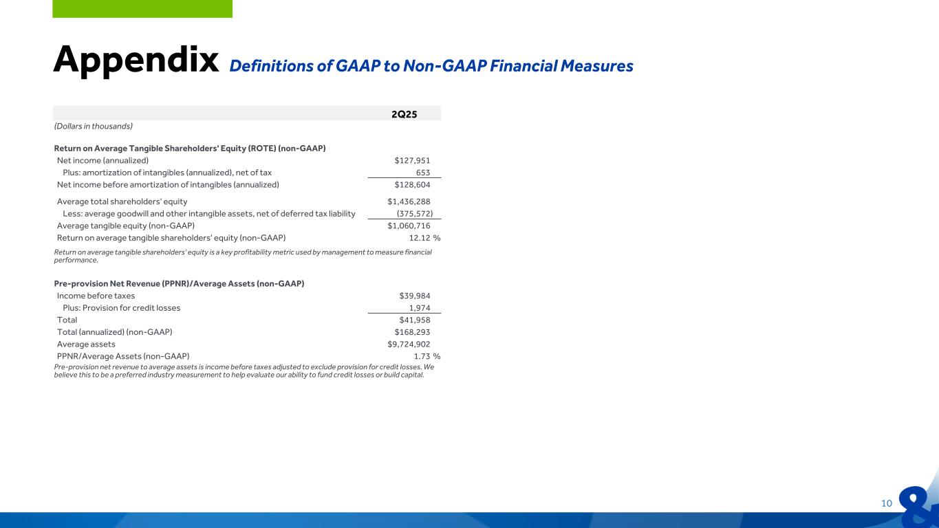 -平均資産に対する引当前純収入(PPNR)(非GAAP基準)は2025年第2四半期、第1四半期ともに1.73%と堅調であった。