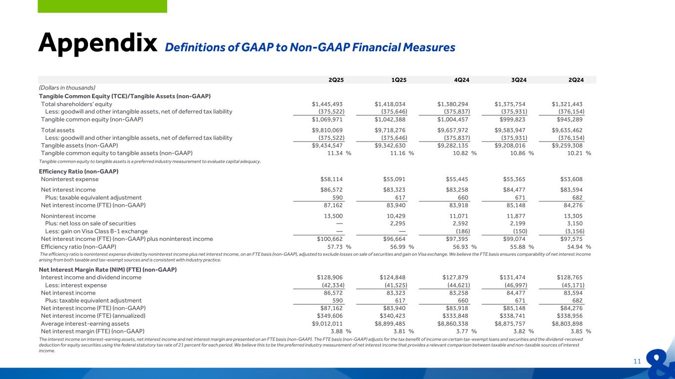 -純金利収入は330万ドル(3.90%)増加し、純金利マージンは2025年第1四半期の3.81%から7ベーシス・ポイント拡大し3.88%となった。